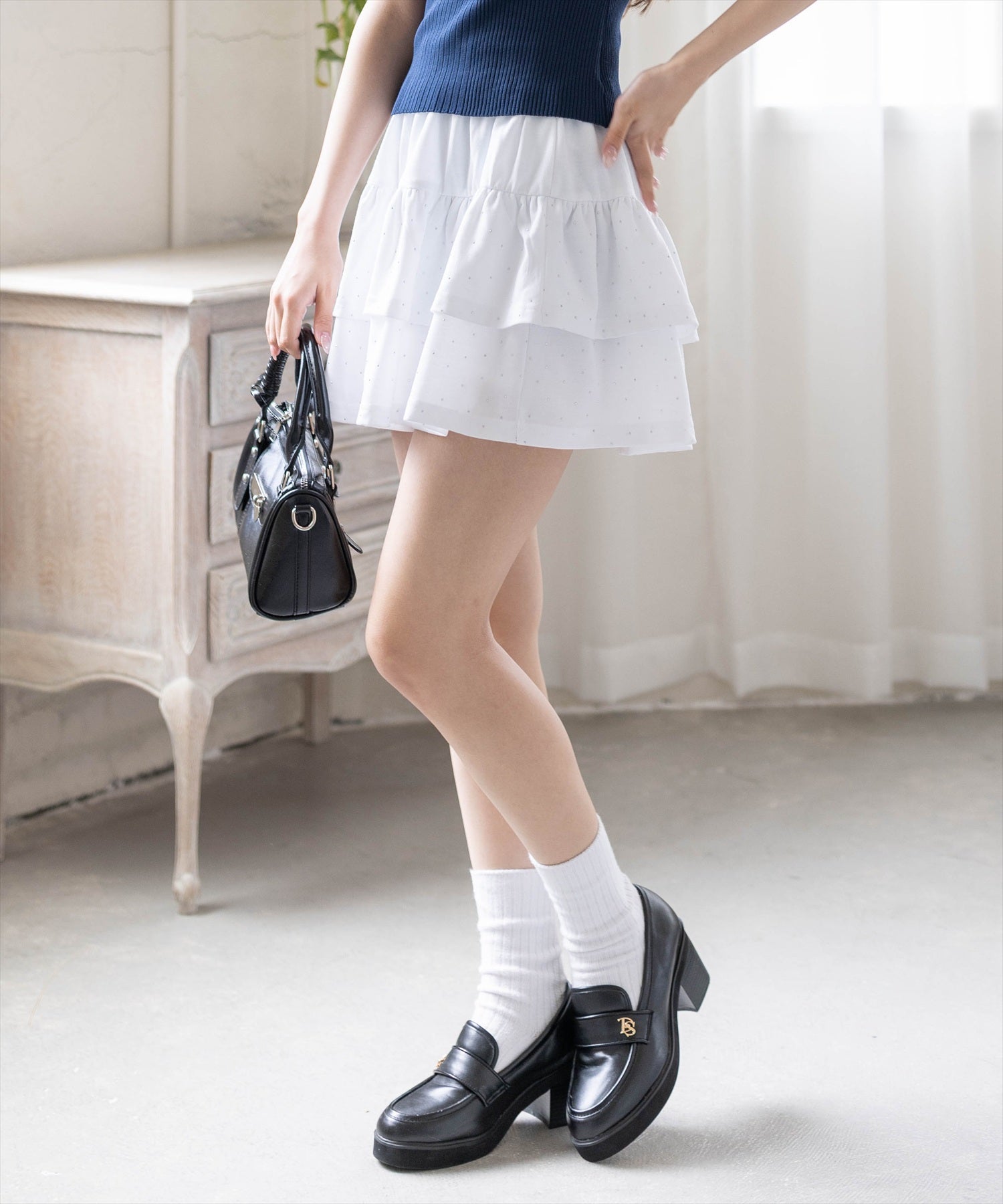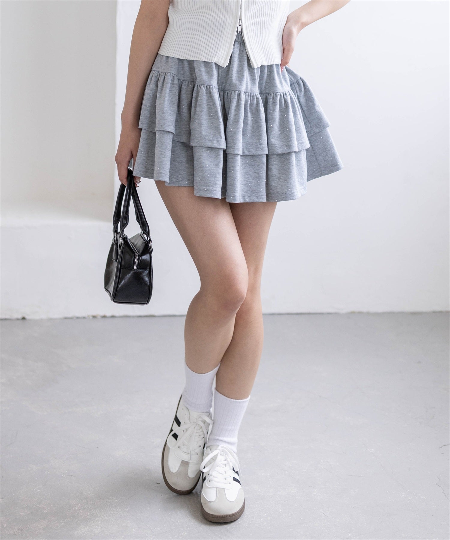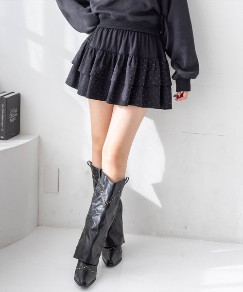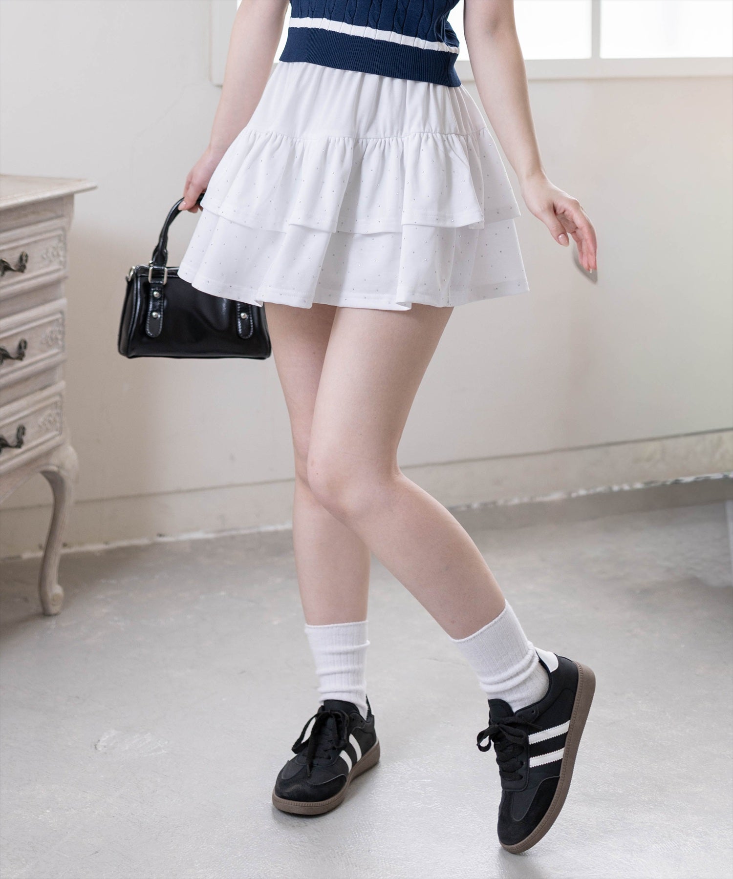 clear≪新色追加≫ラインストーン2段ティアードスウェットミニスカート(セット可)[CL9600]