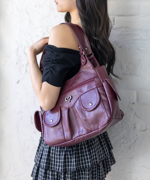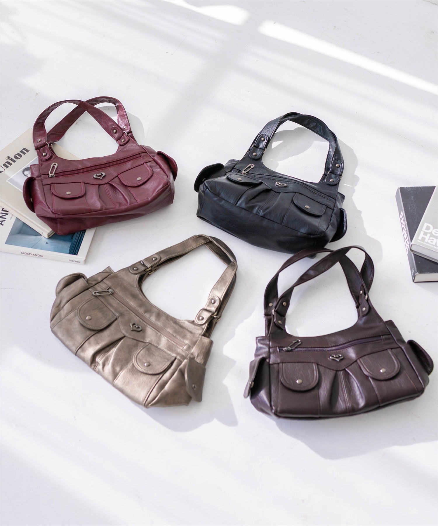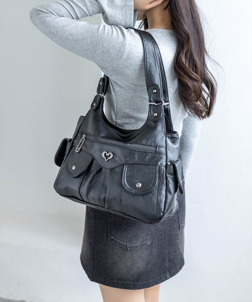 clear≪新色追加≫ヴィンテージライクハートモチーフ合皮バッグ[ZA0063]