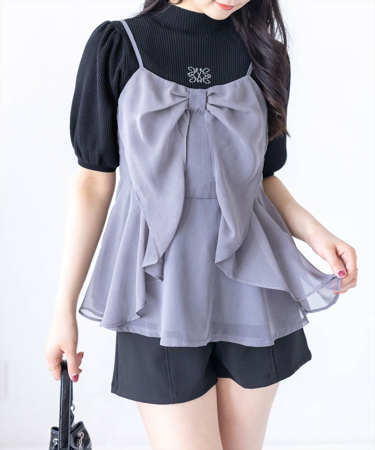 clear≪新色追加≫チュールリボンデザインニットトップス[CL9146]