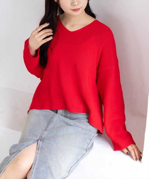 STAY MOTION≪WEB限定/新作≫裾フレアサイドギャザーニット[ST1129]