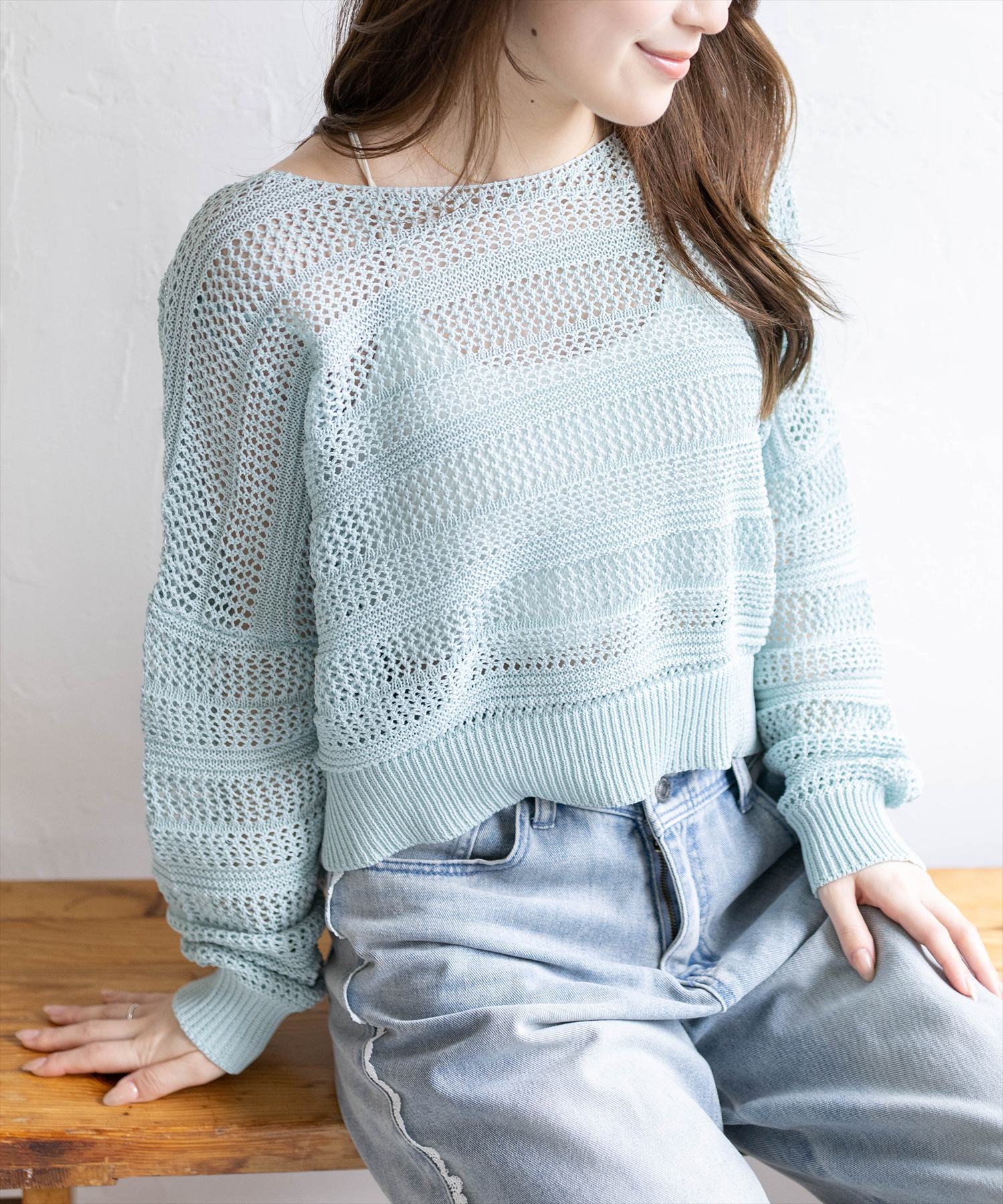 clear≪新作≫レースアップ透かし編みニットトップス[CL9564]
