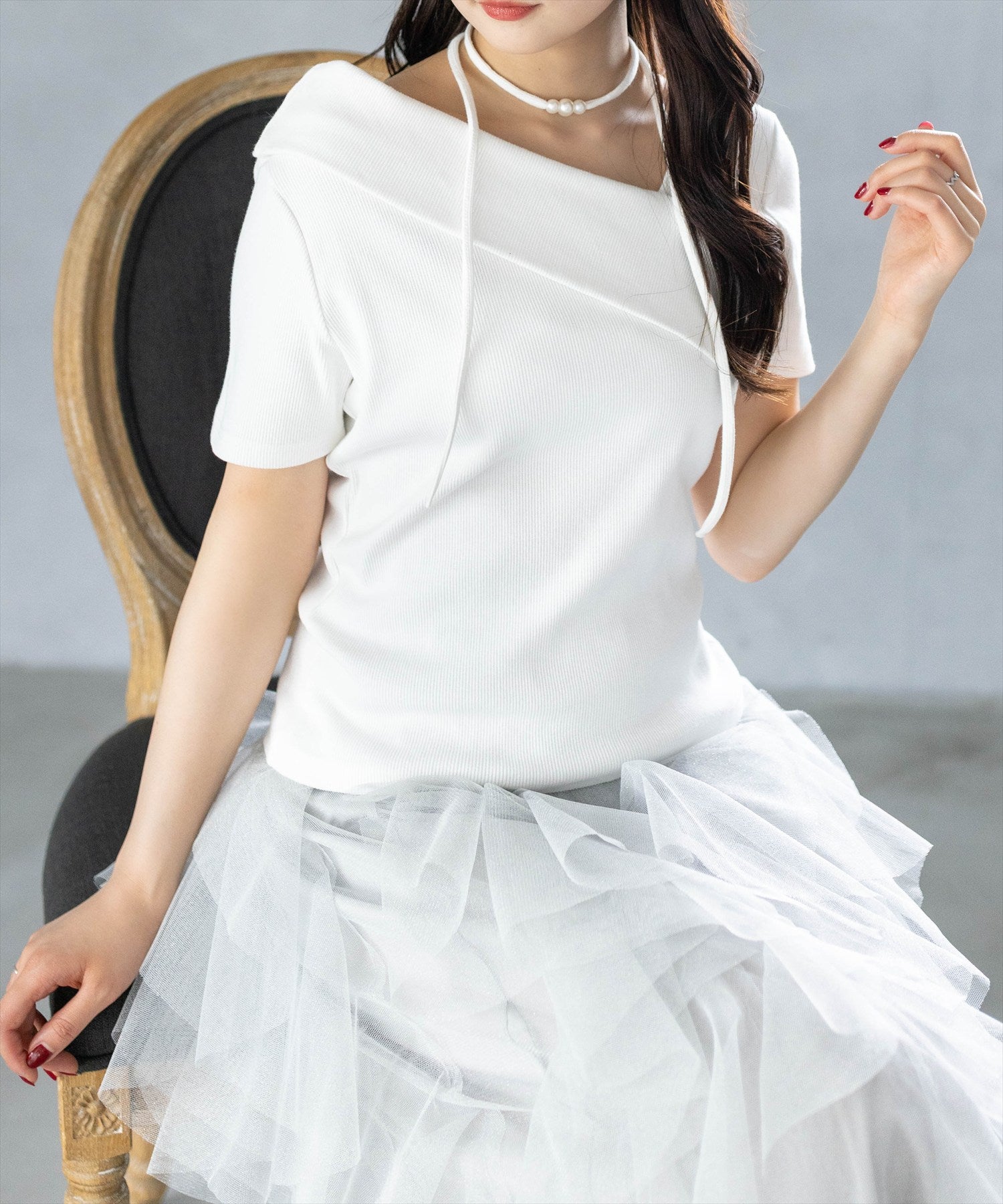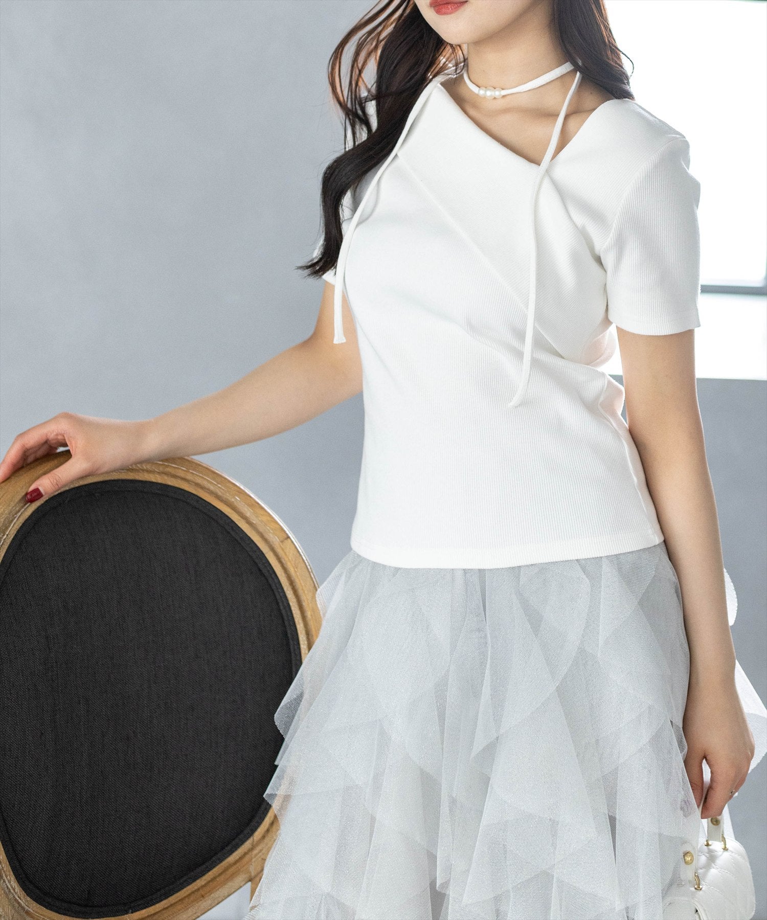 clear≪WEB先行販売/新作≫チョーカー付きクロスリブ半袖カットソー[CL9869]