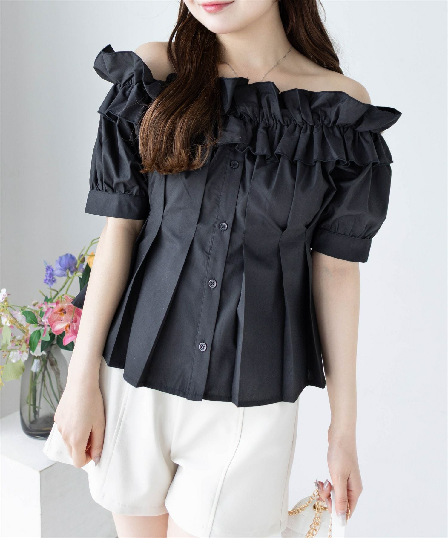clear 無地&柄肩リボンペプラムブラウス[CL9121]