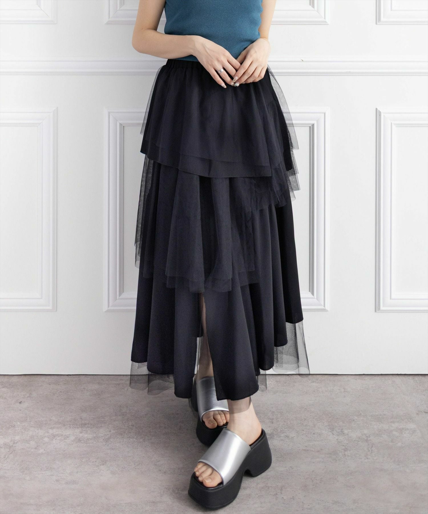 CLEAR BASIC チュールドッキングアシンメトリースカート[CL9301]
