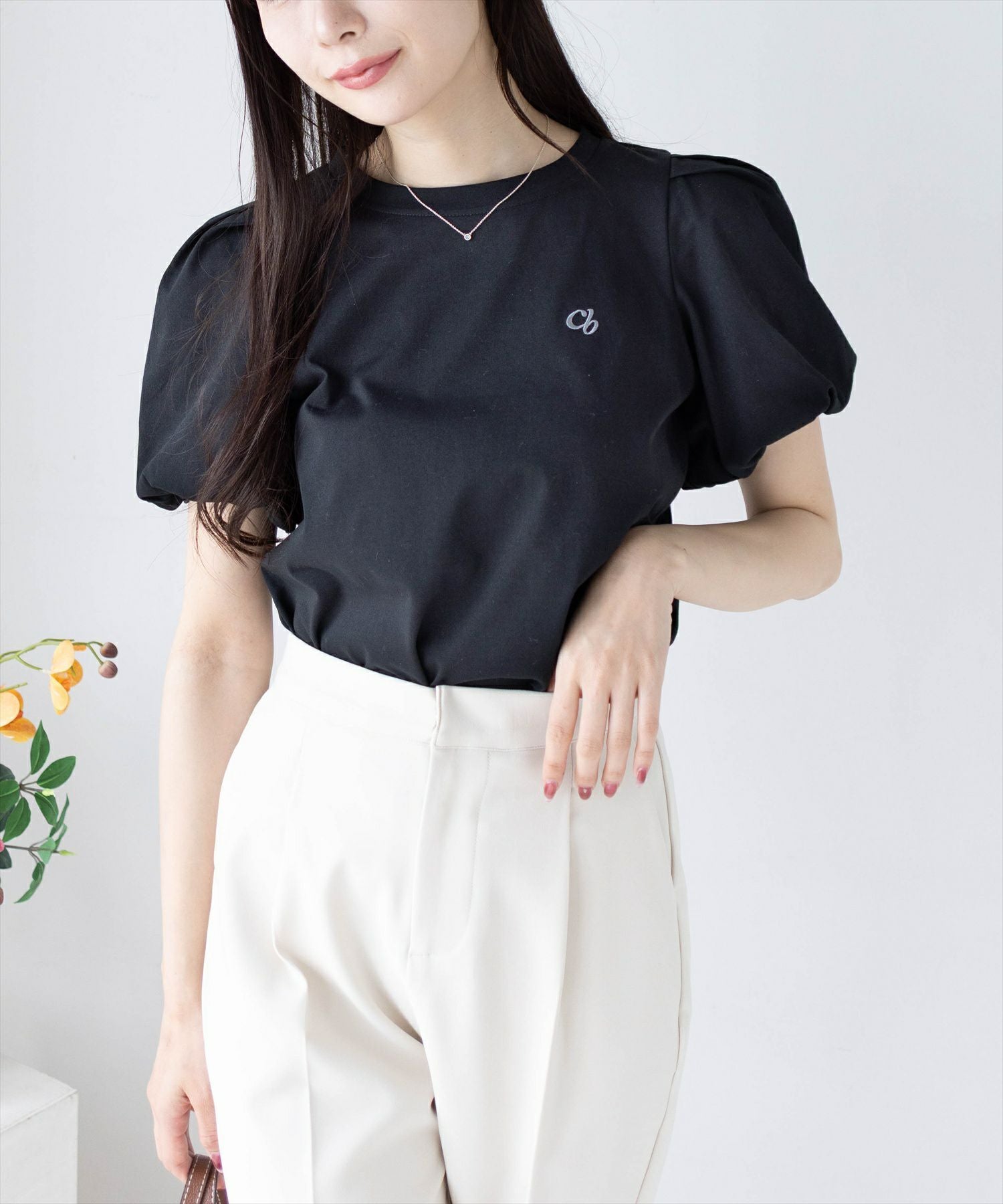 CLEAR BASIC 袖バルーンワンポイント刺繍Tシャツ[CL9137]