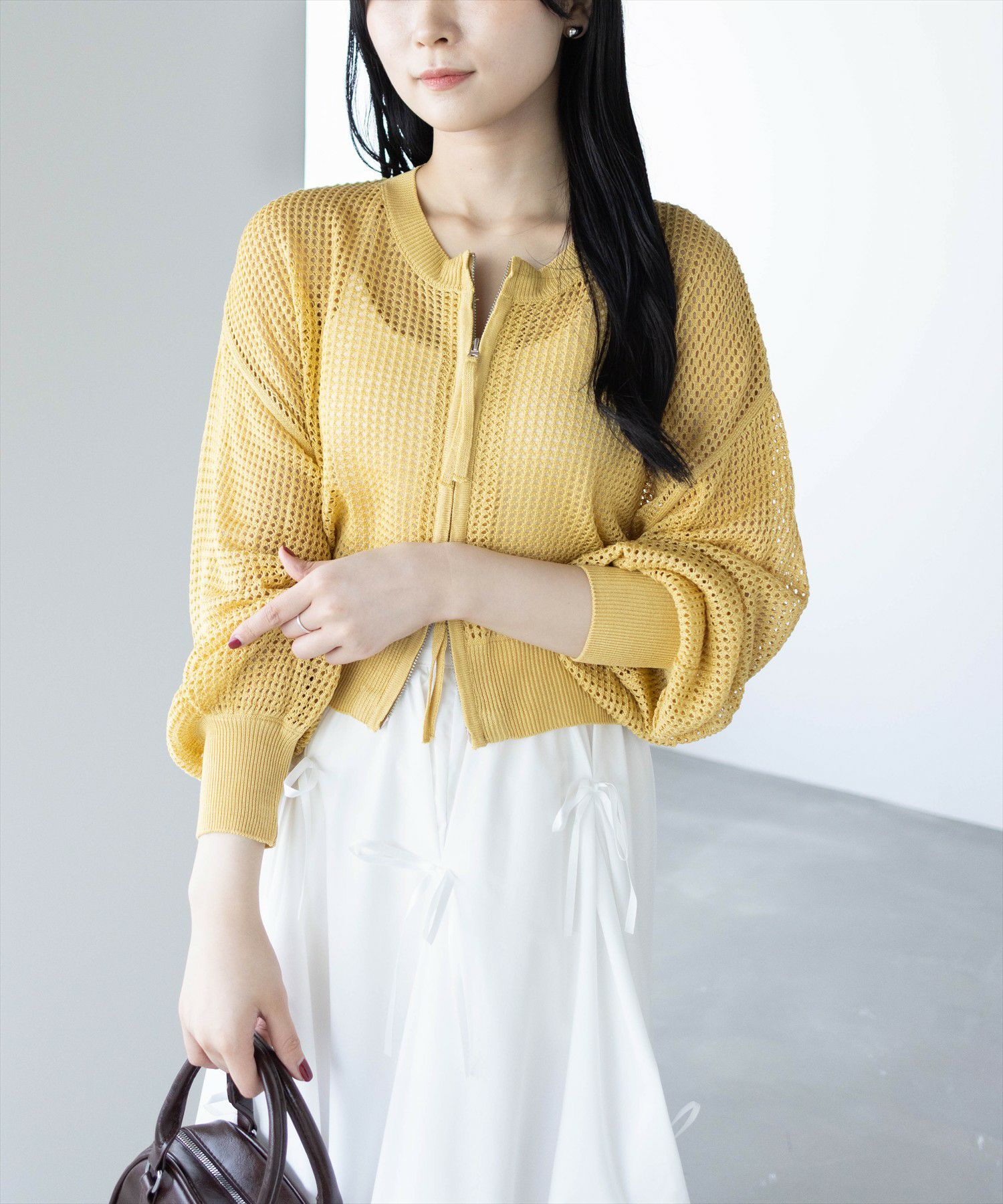 CLEAR BASIC ダブルジップメッシュニットトップス[CL9281]