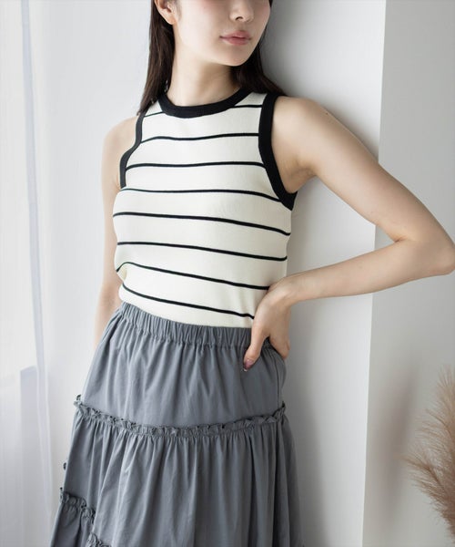 CLEAR BASIC ミラノリブノースリーブニットトップス[CL9111]