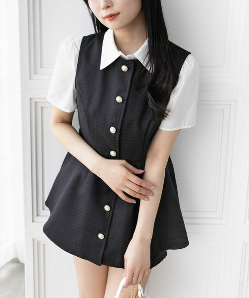 clear サマーツイードフロントボタンチュニック&ショートパンツセット[CL9225]
