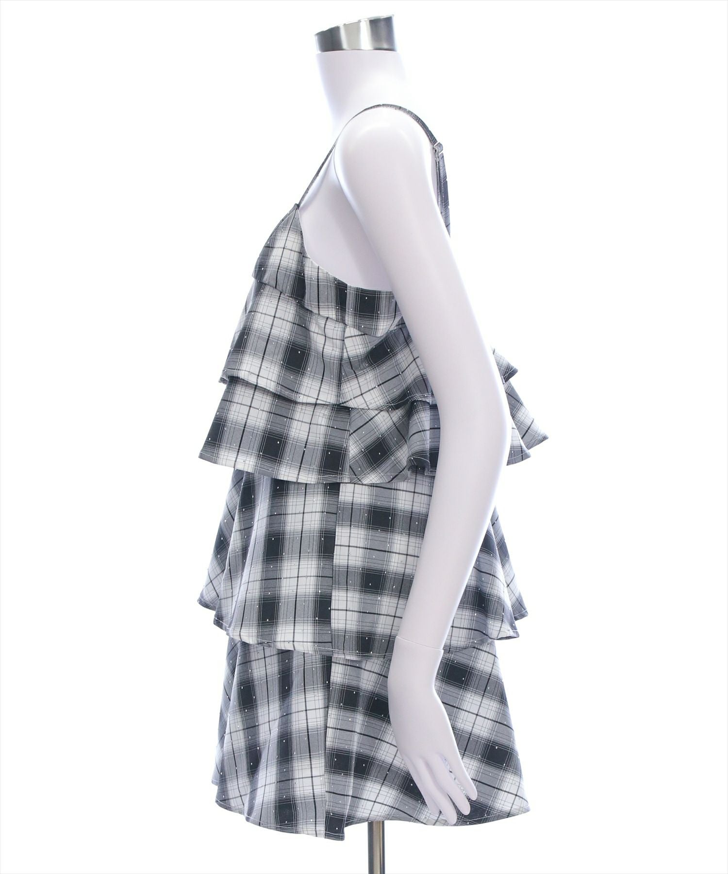 clear ラインストーンチェック柄ティアードワンピース[CL9290]