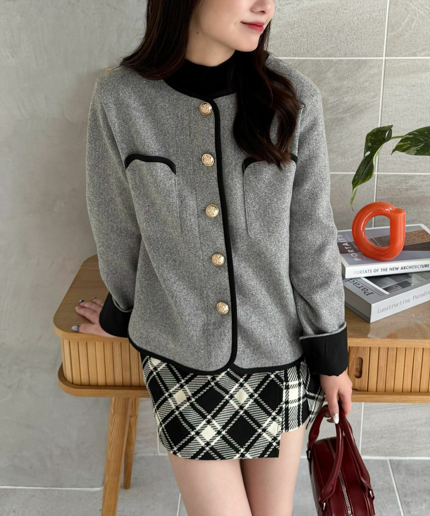 clear 配色パイピングポケット付きジャケット[CL8959]