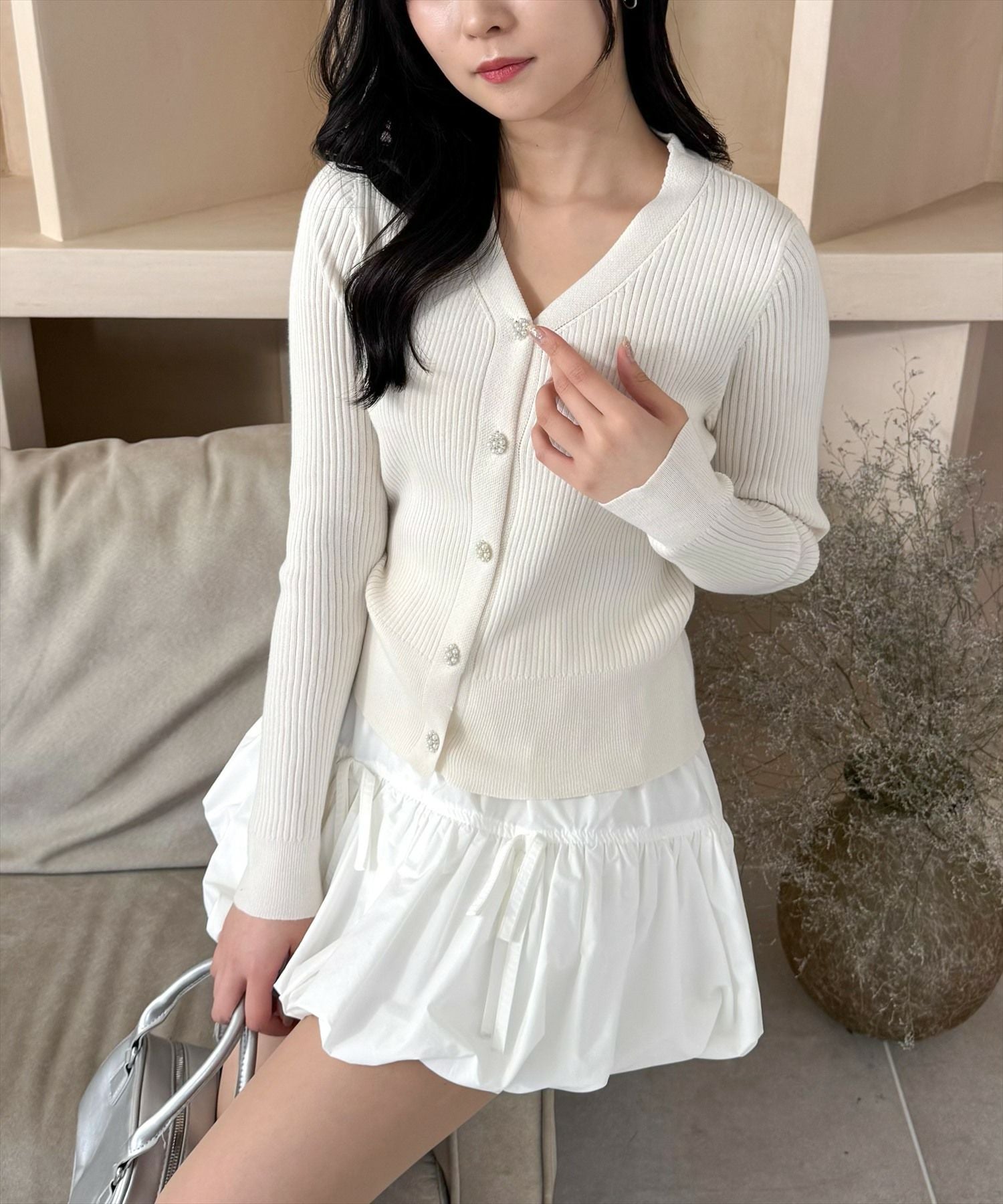 CLEAR BASIC ラメフェザーパールボタンニットカーディガン[CL8935]