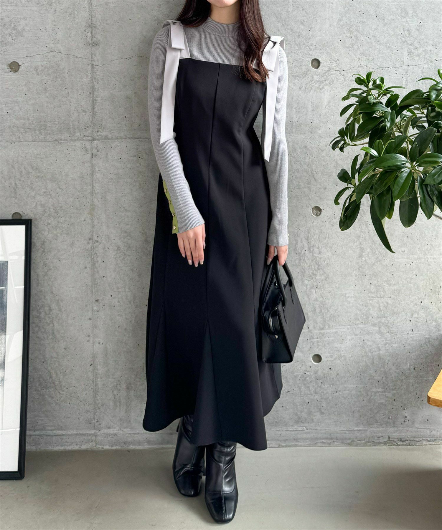 CLEAR BASIC 配色肩リボンフレアワンピース[CL8996]