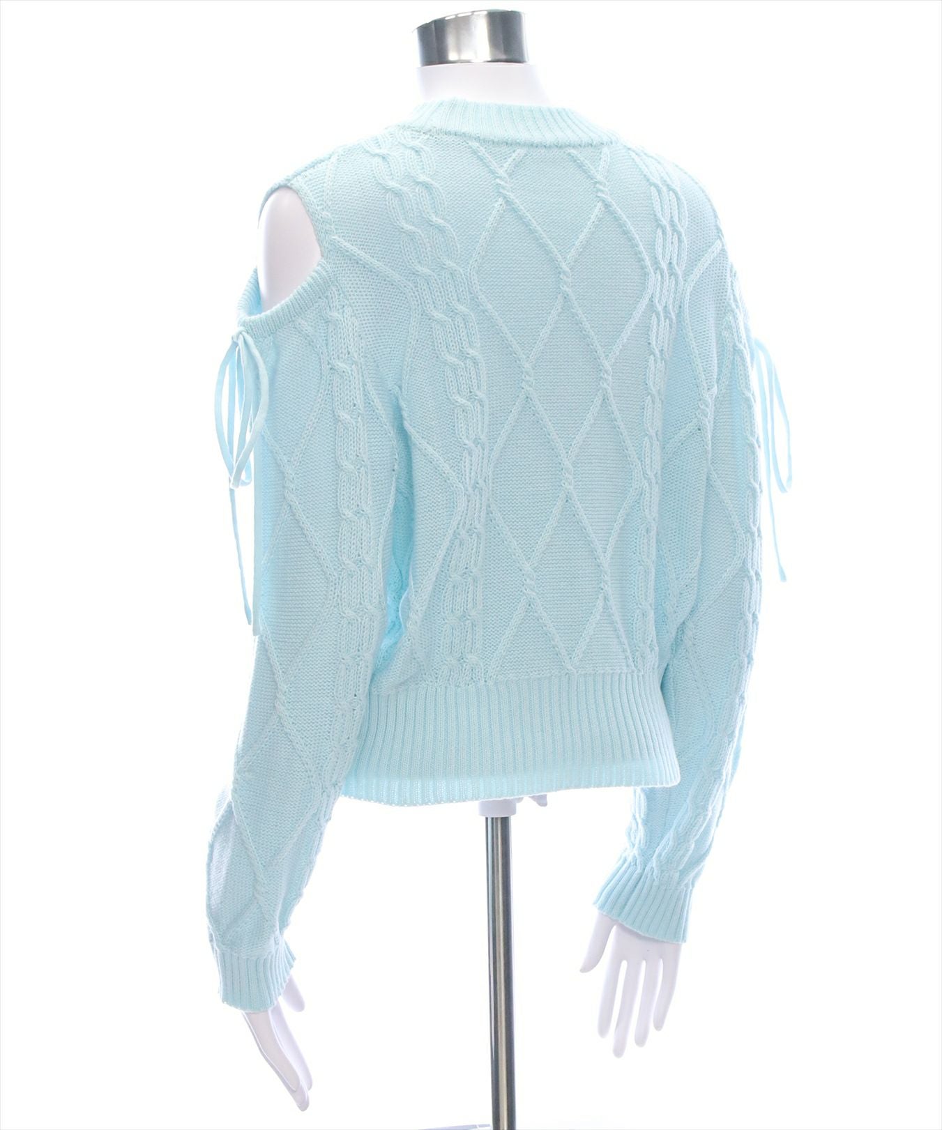 clear オープンショルダーケーブル編みニットトップス[CL8924]