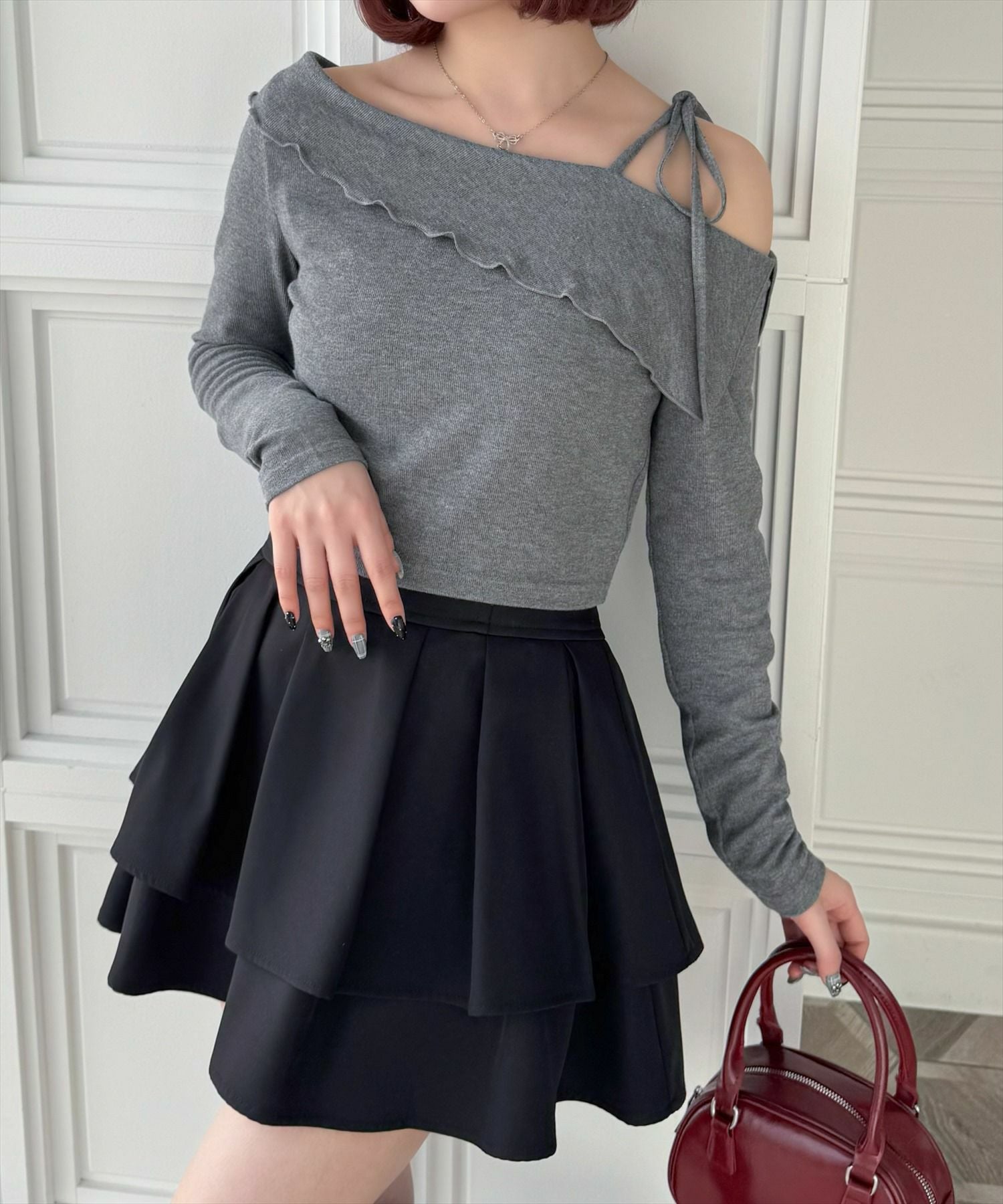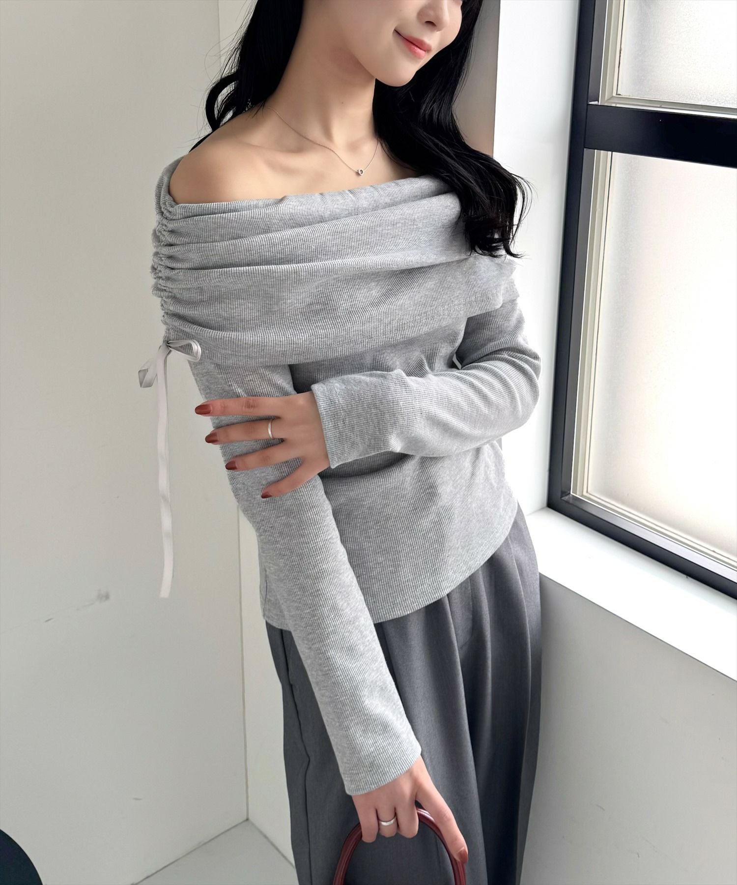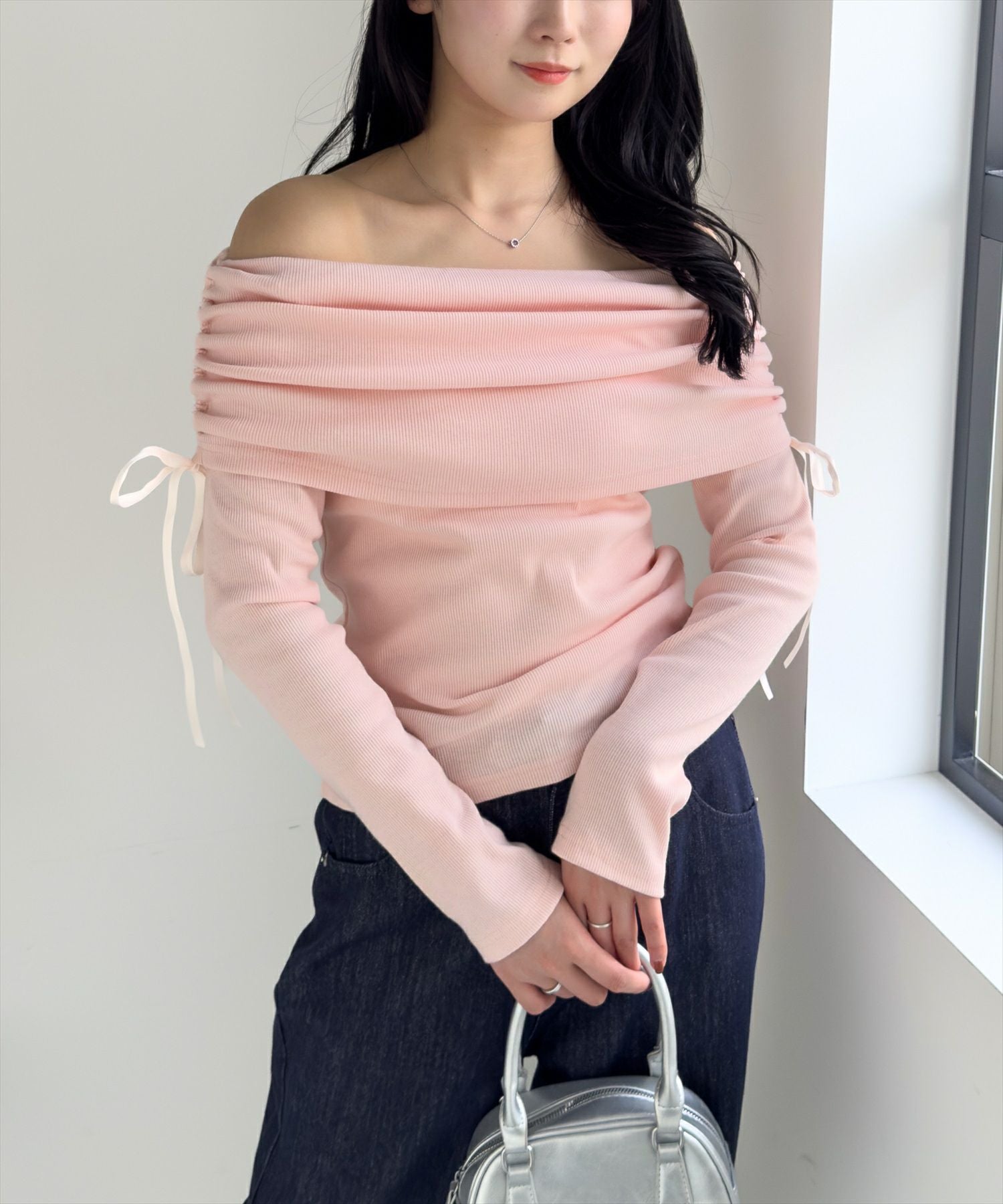 clear オフショルニットリボントップス[CL9020]