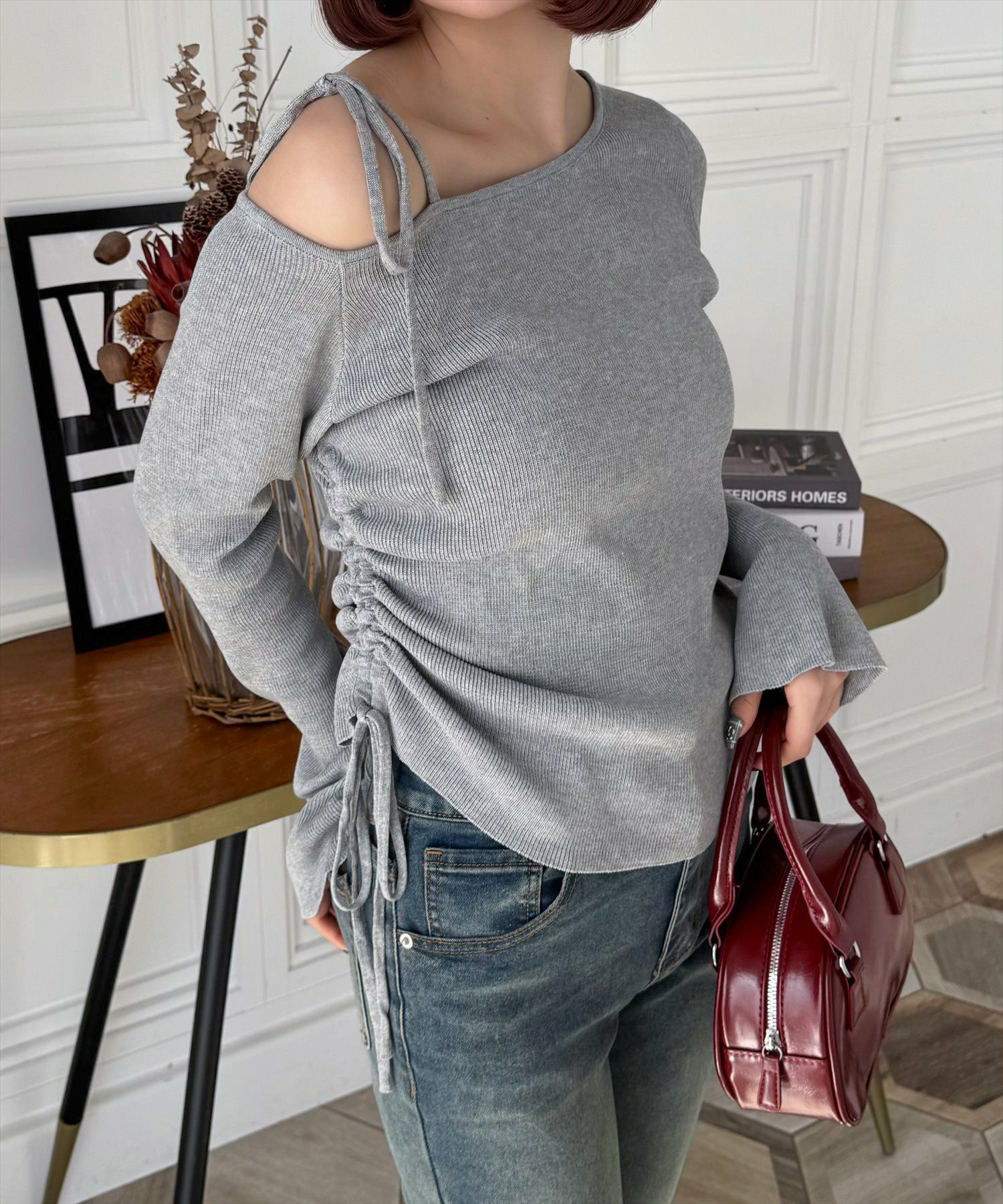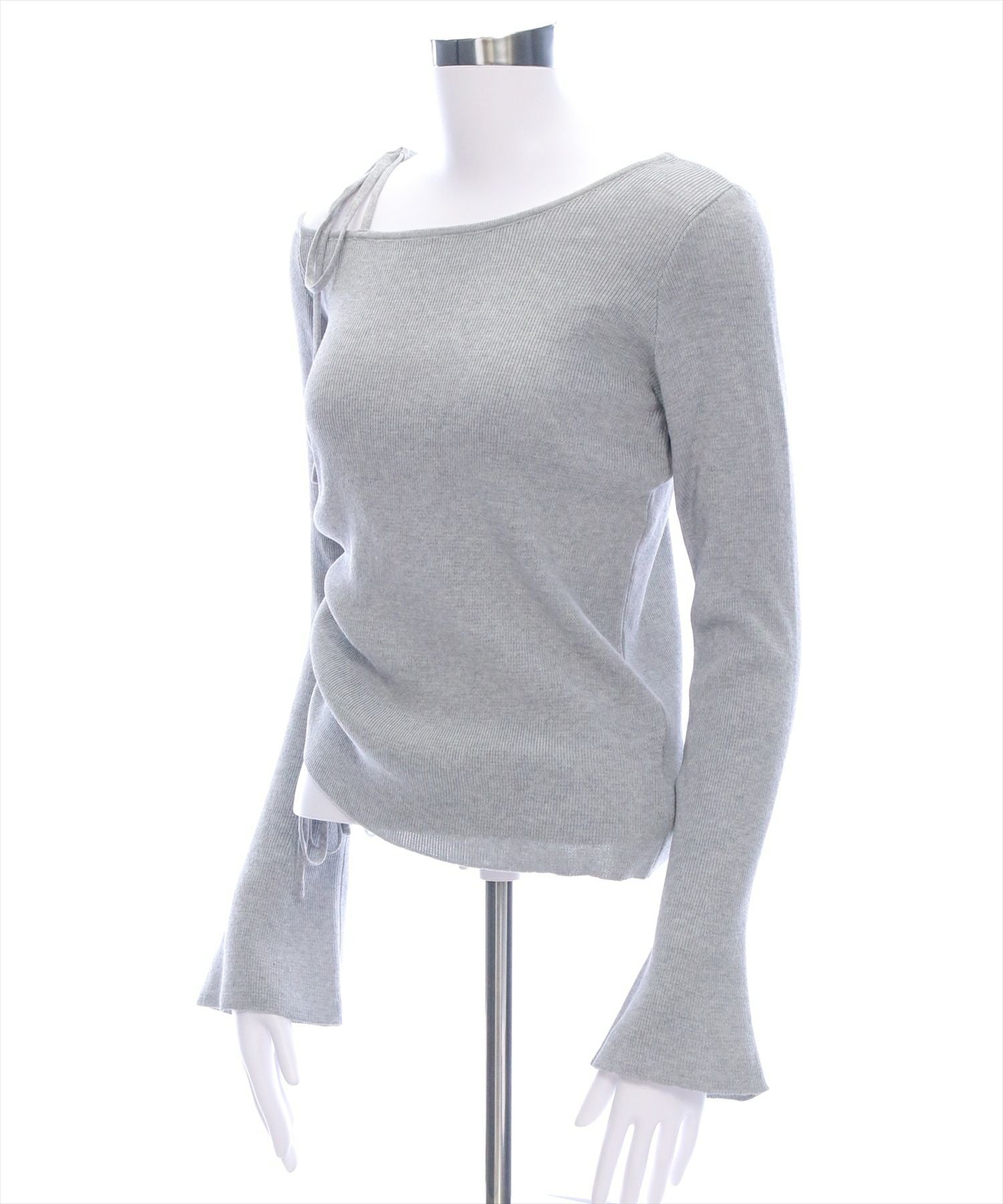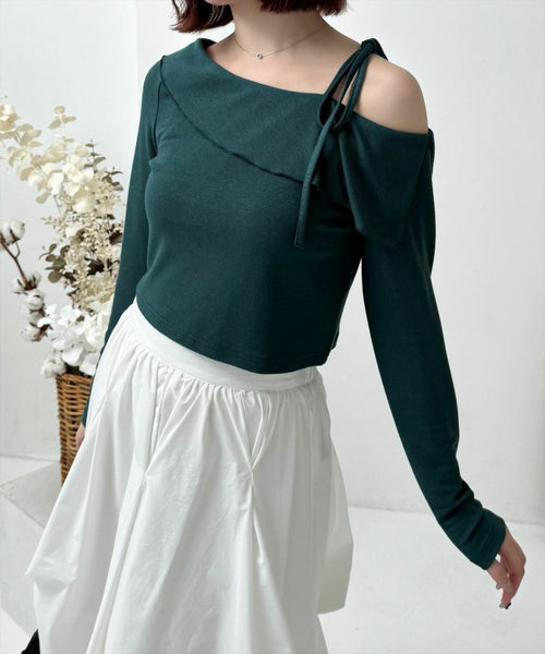 clear サイドドロスト肩リボンワンショルニットトップス[CL8971]