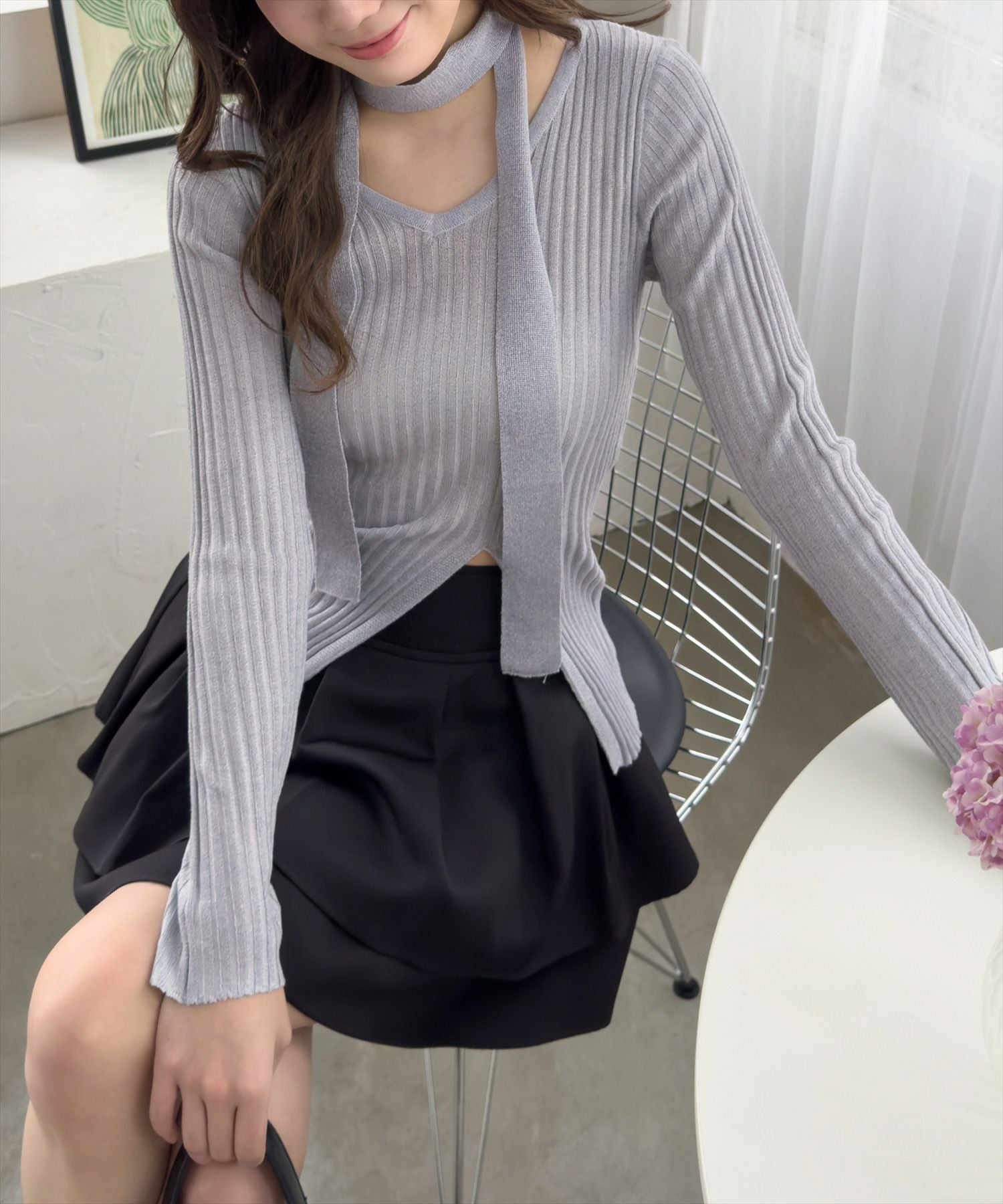 clear チョーカー付きアシンメトリーニットカーディガン[CL9019]
