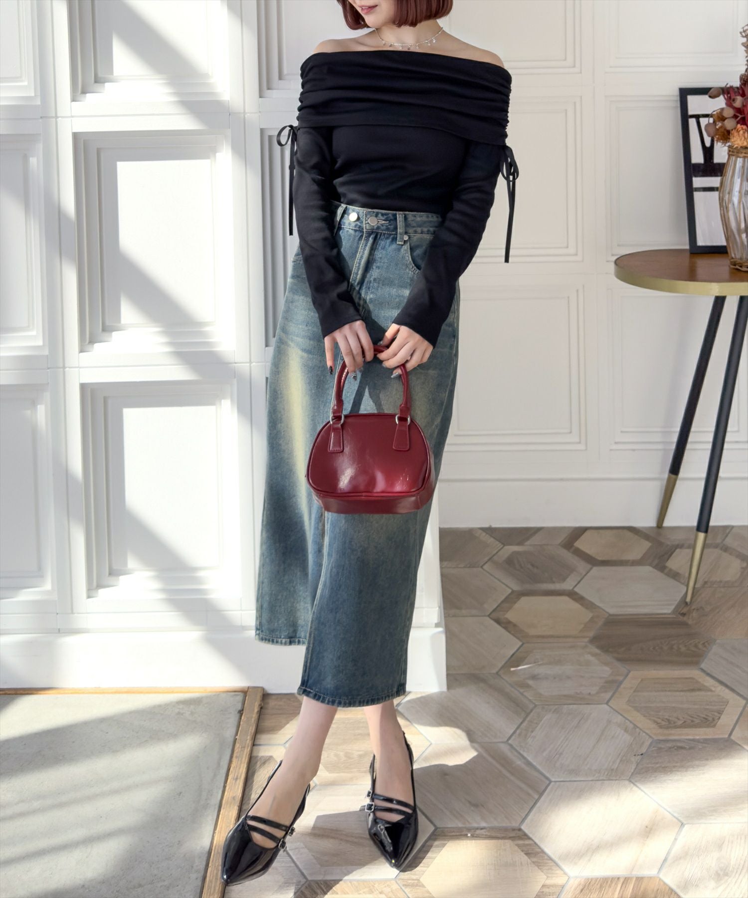 clear フリルオフショルシャーリングブラウス[CL8927]