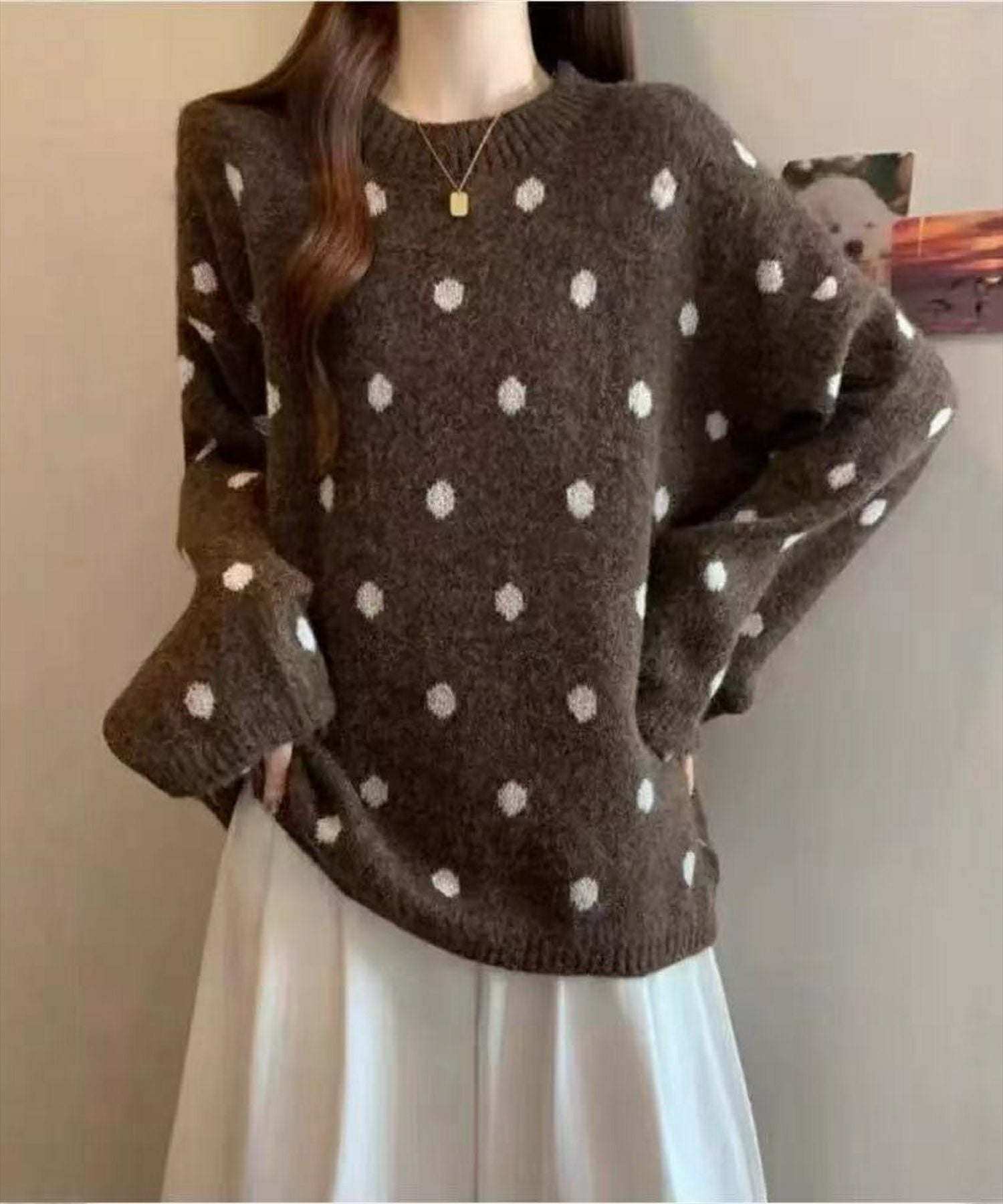 STAY MOTION≪WEB限定≫ドット柄ワンショルニットトップス[ST1102]