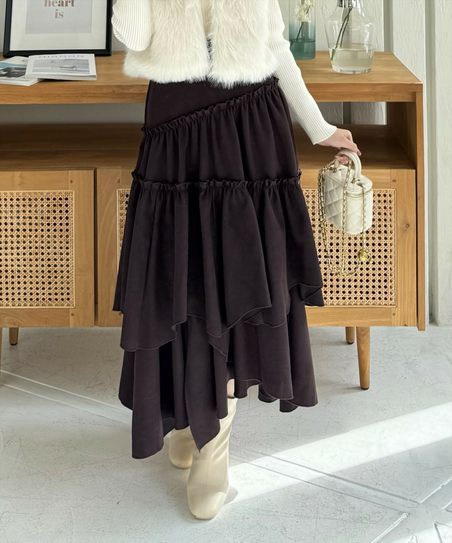 CLEAR BASIC シュリンク加工ティアードロングスカート[CL9605]