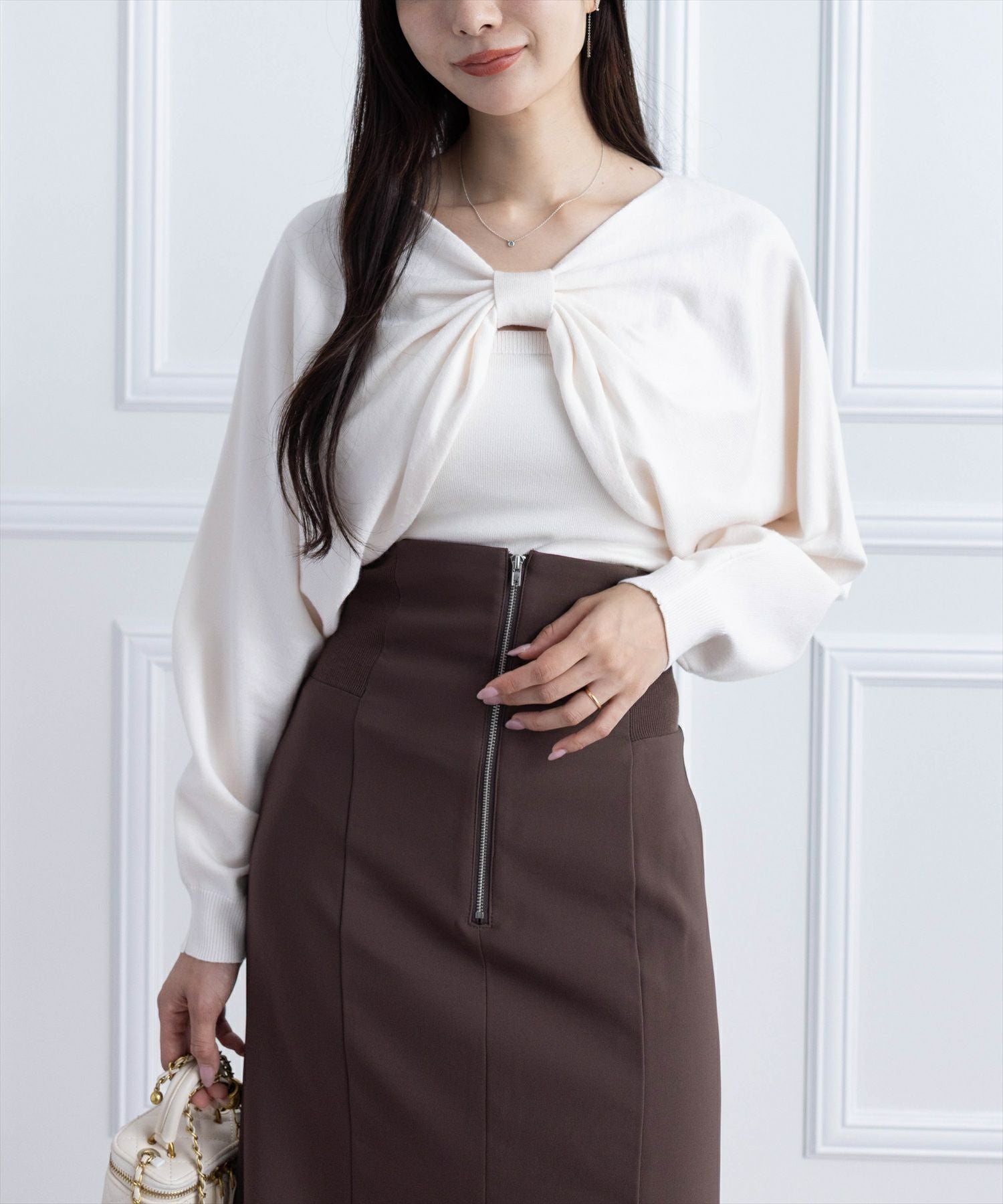 clear 2wayフロントクロスリブニットトップス[CL9569]