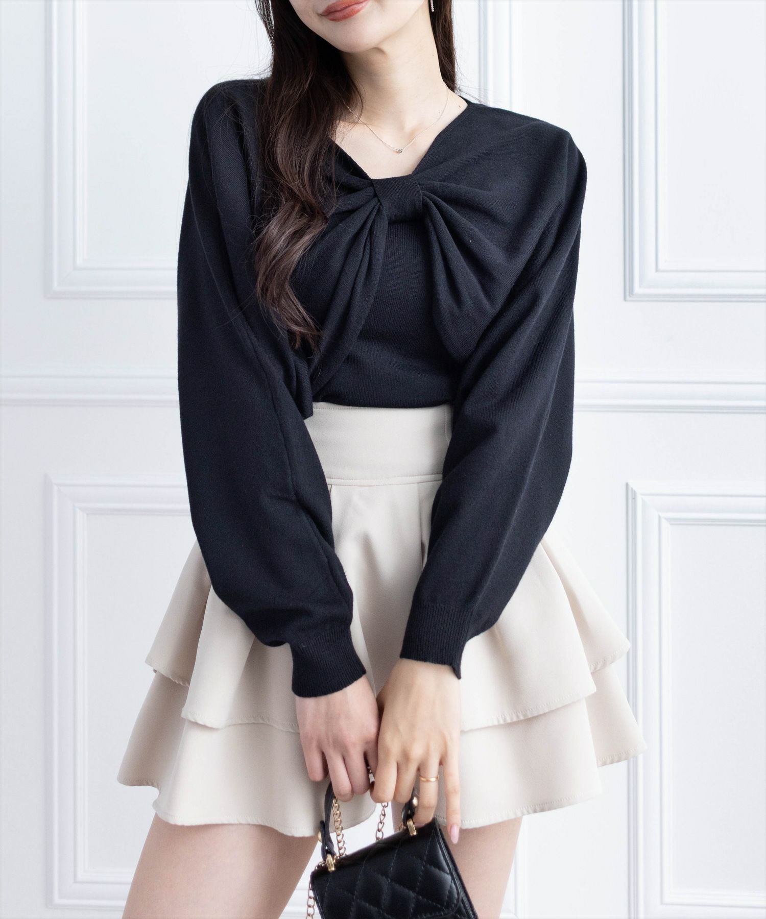 CLEAR BASIC≪再入荷≫バックリボン配色フレアスリーブニットトップス[CL8953]