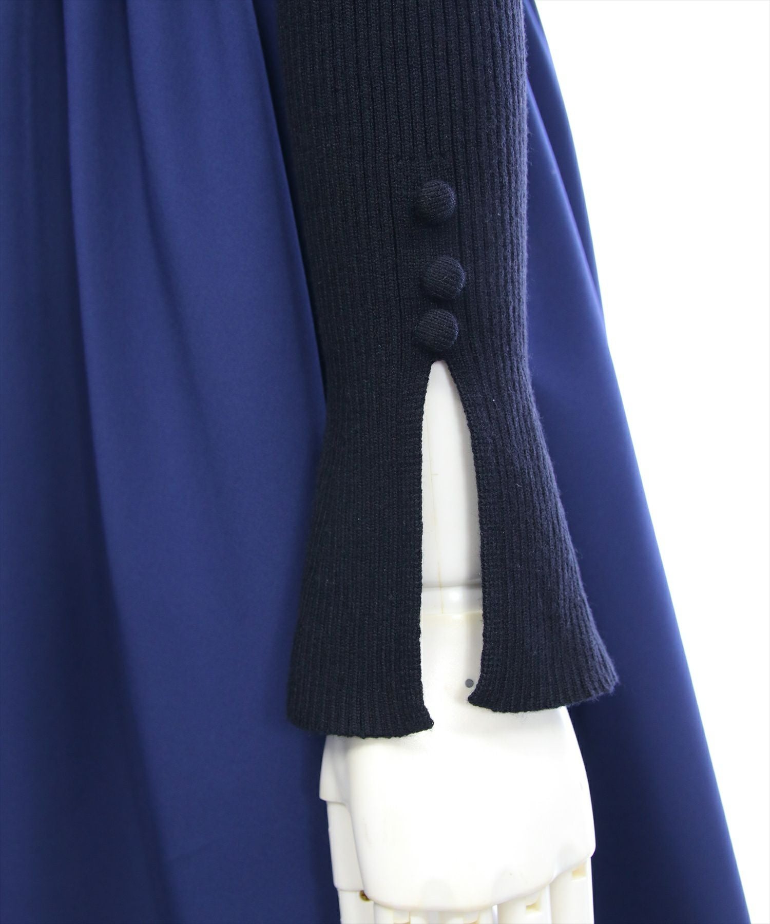CLEAR BASIC シャツレイヤード袖口リボンニットトップス[CL9491]