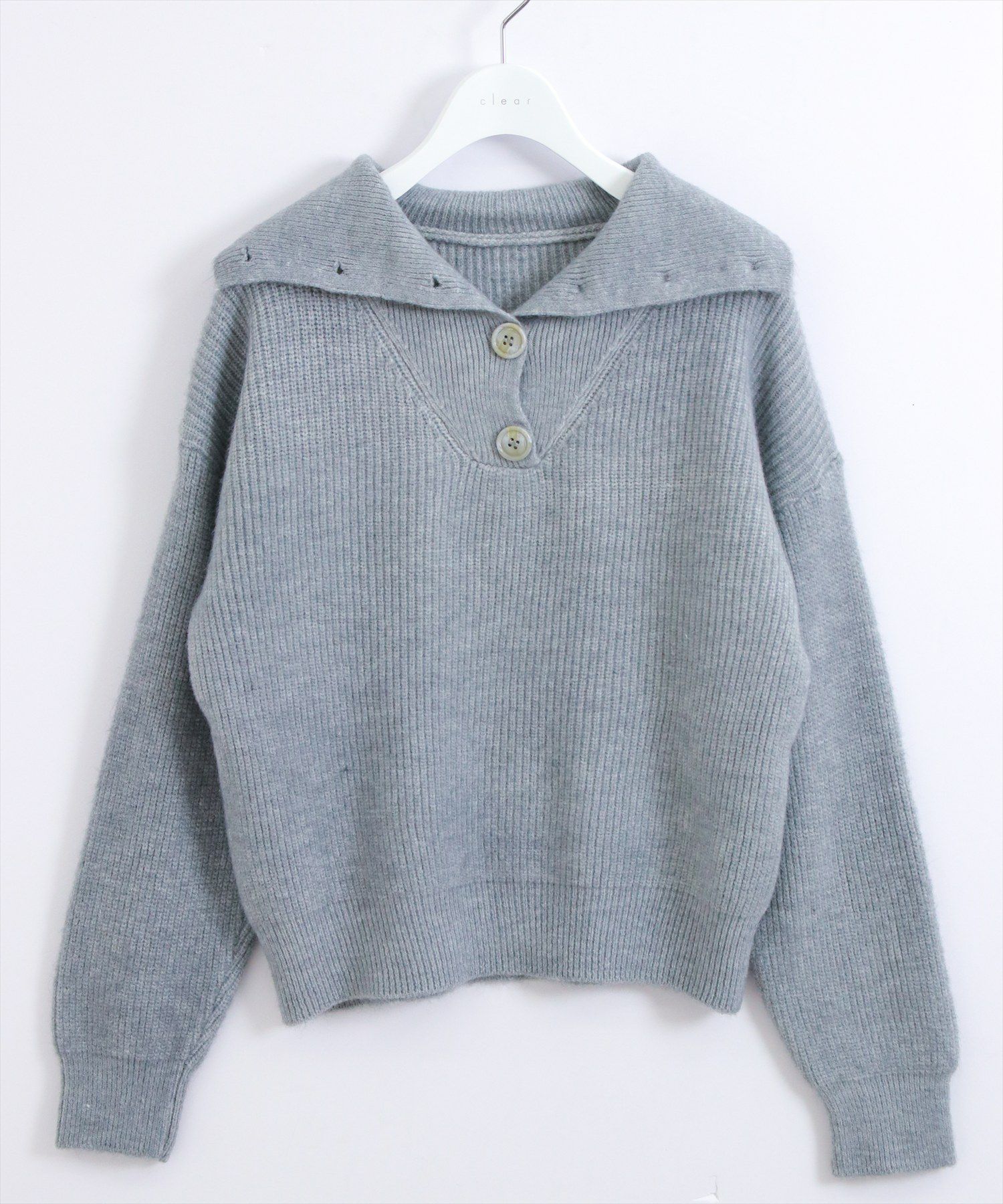 CLEAR BASIC≪再入荷≫袖配色ボタンリブニットトップス[CL8929]