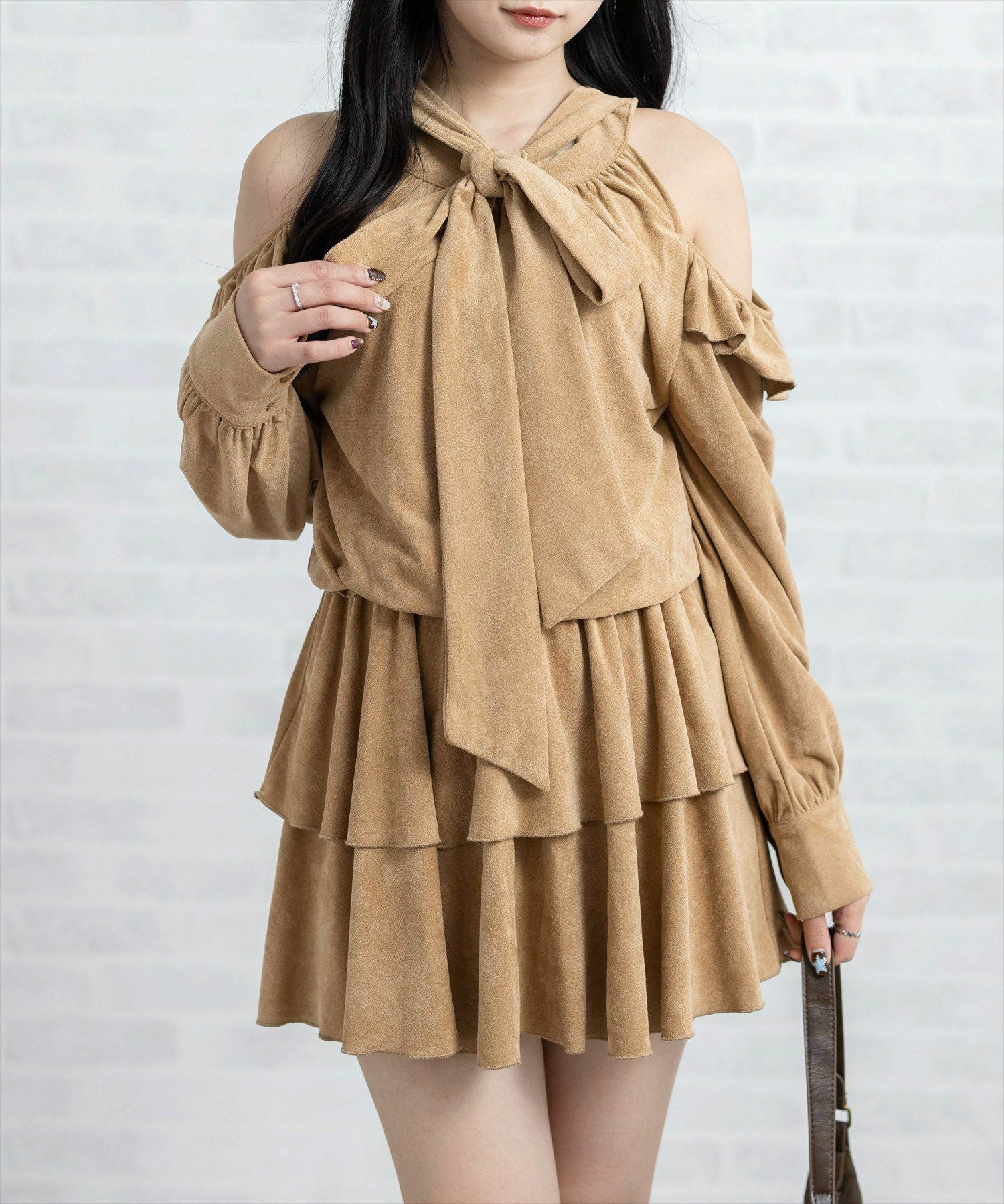 clear 肩あきビジューチェックシャツミニワンピース[CL9525]