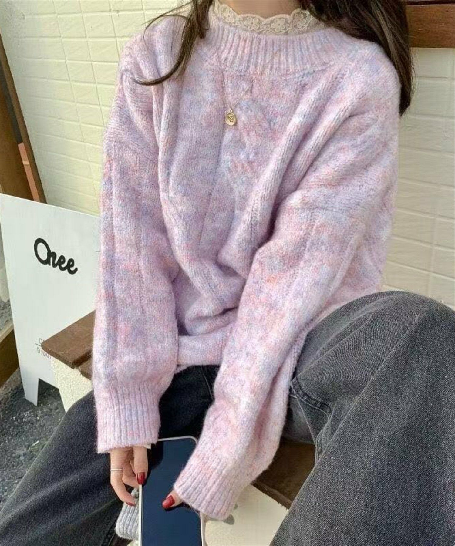 STAY MOTION≪WEB限定≫レースレイヤード風Vネックニットトップス[ST1111]