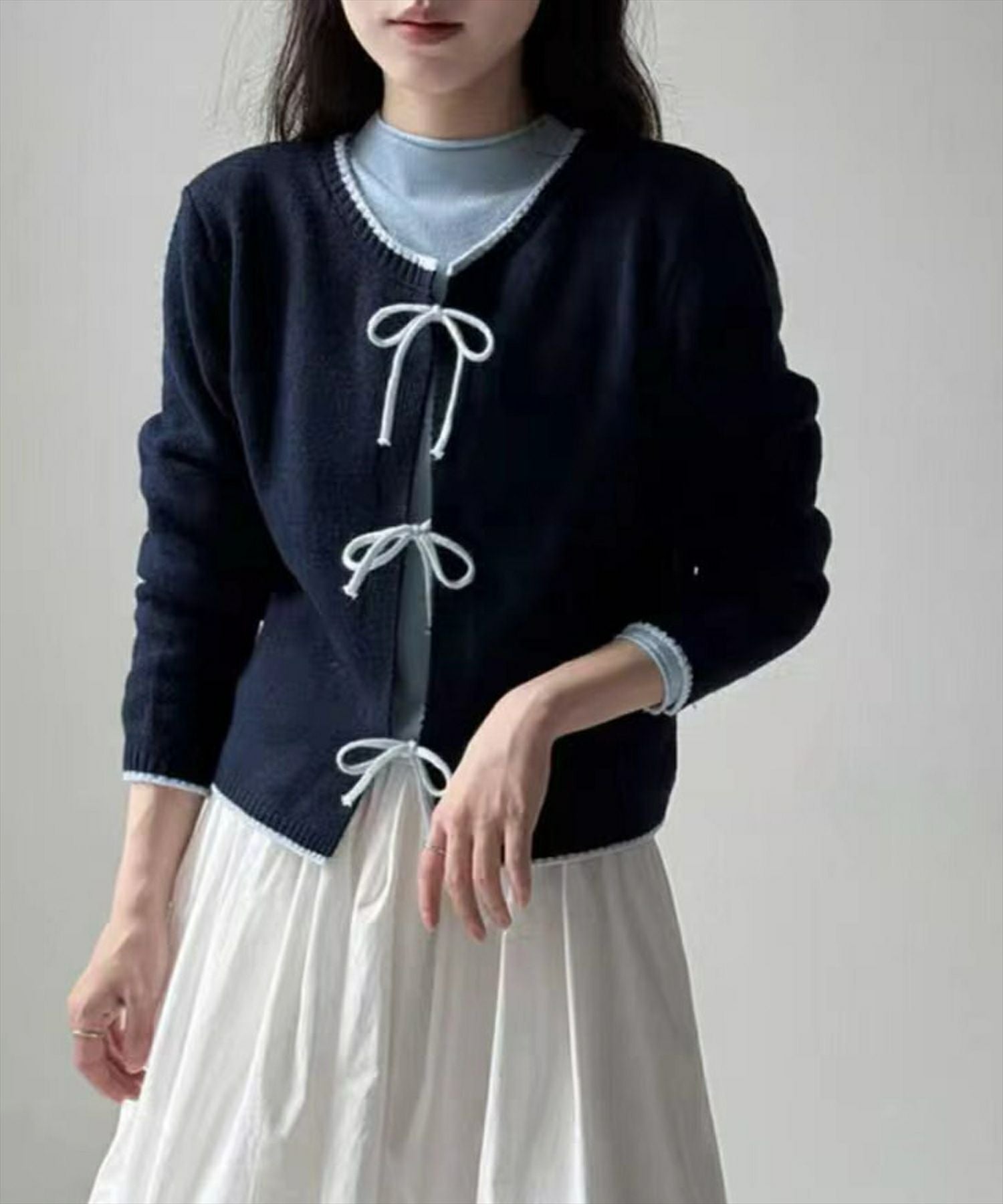 CLEAR BASIC リボンボタンニットカーディガン[CL9579]