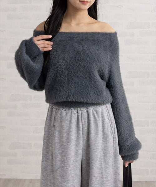 clear パールデザインフェザーオフショルニットトップス[CL9047]
