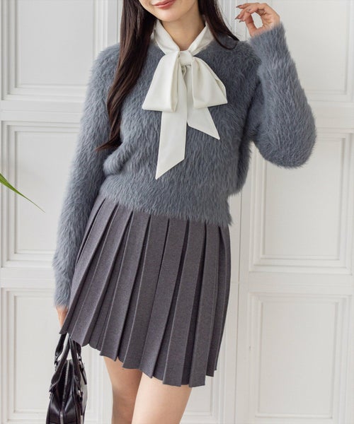 clear ワンショルリボンフェザーニットトップス[CL9050]