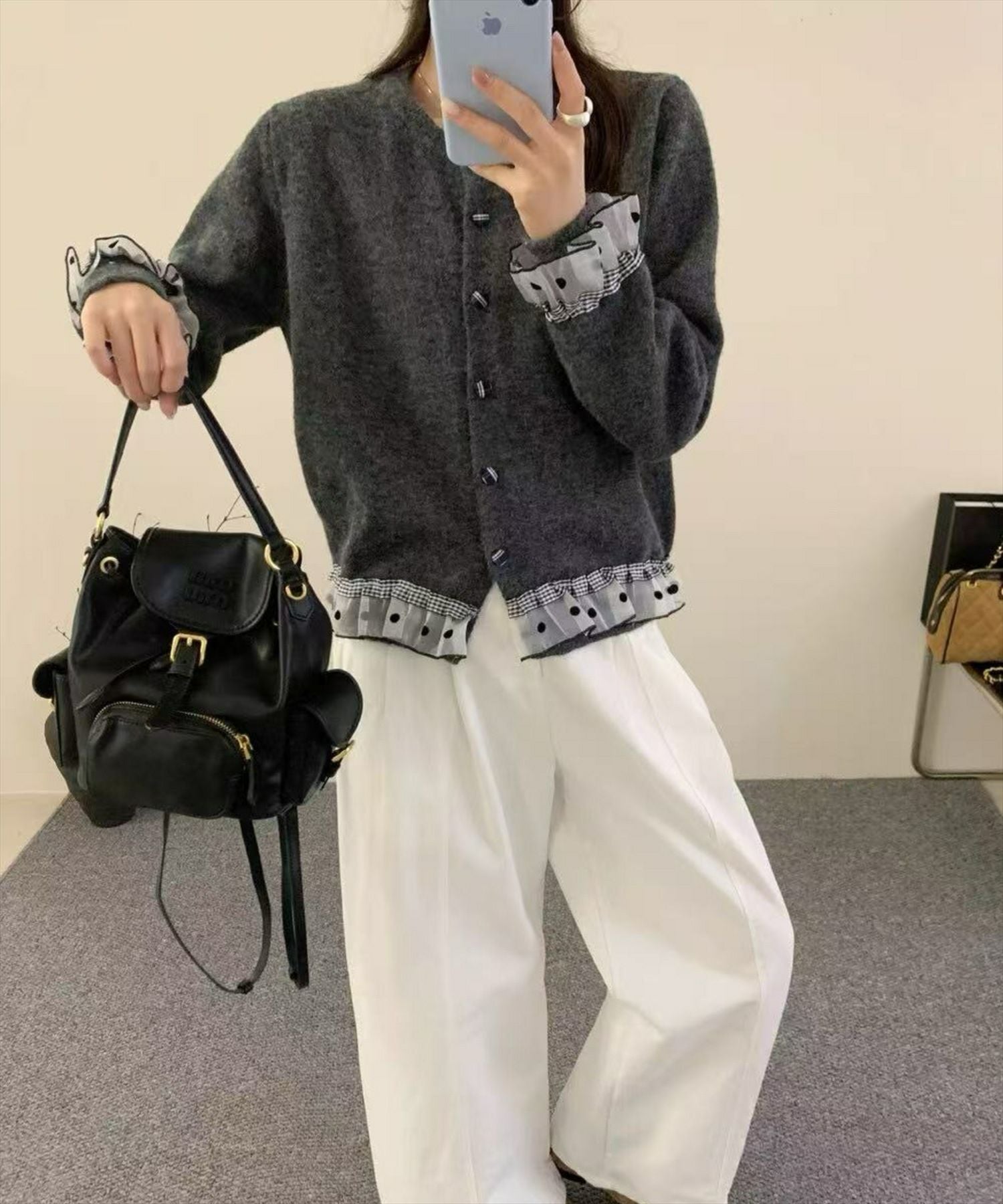 clear リボン付き袖口ファーニットカーディガン[CL9479]