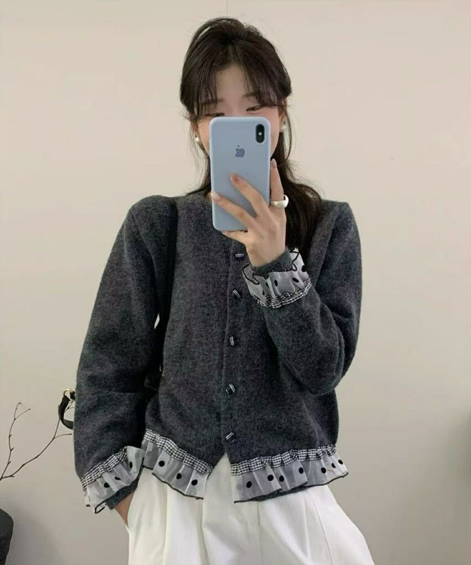 CLEAR BASIC パールデザイン長袖ニットカーディガン[CL9201]