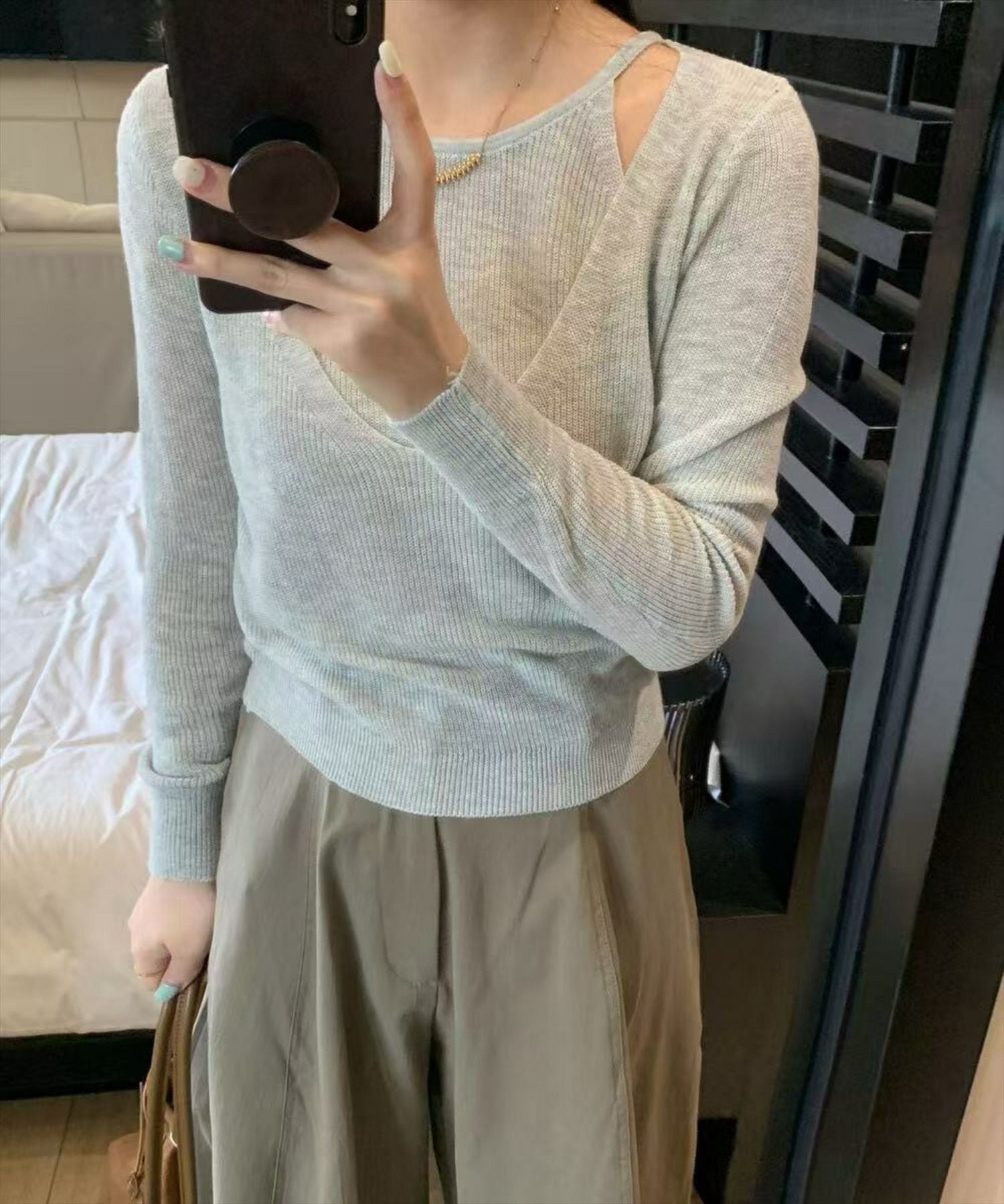CLEAR BASIC オーガンジードッキングリブニットトップス[CL9198]