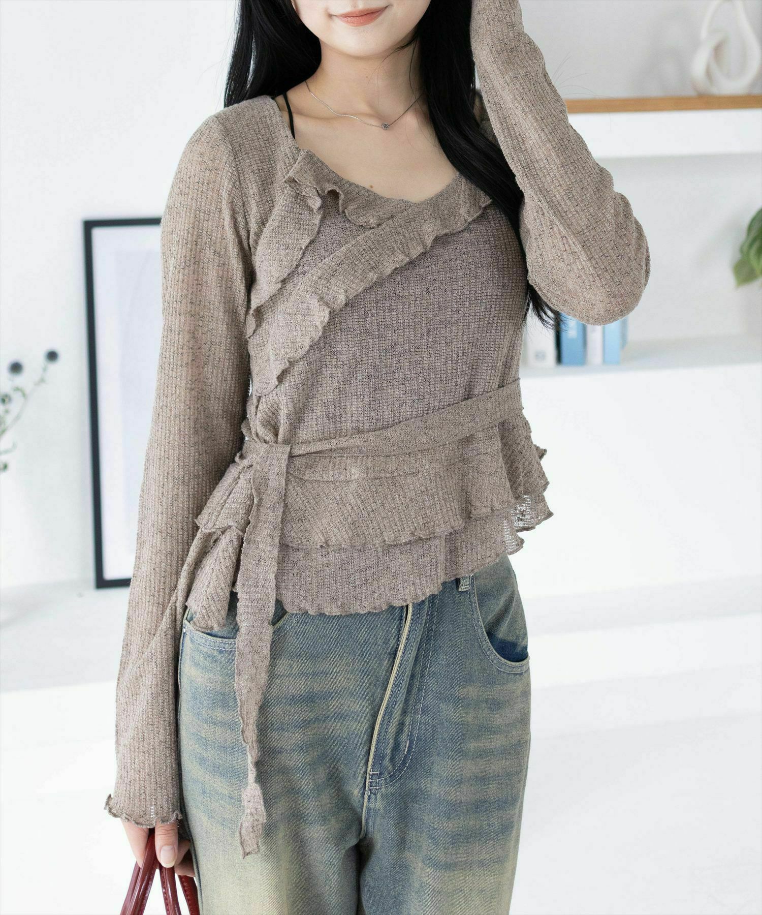 CLEAR BASIC マルチwayフリル長袖カットソートップス[CL9409]