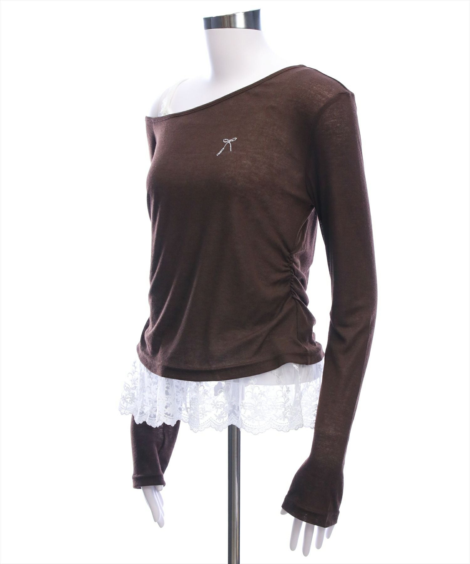 STAY MOTION≪WEB限定≫サイドシャーリングワンショルカットソー+レースキャミセット[ST1021]