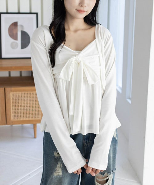 STAY MOTION≪WEB限定≫リボン長袖カーディガン+小花柄キャミアンサンブル[ST1013]