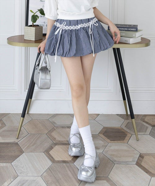 clear チェック柄切替バルーンミニスカート[CL9466]