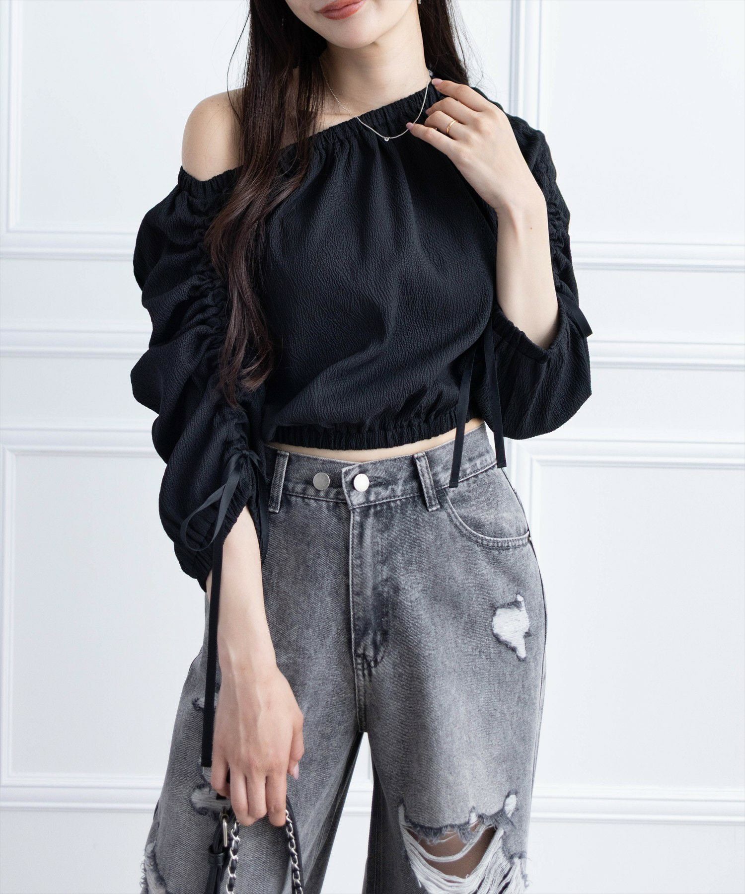 clear フロントフリルオフショルブラウス[CL9374]