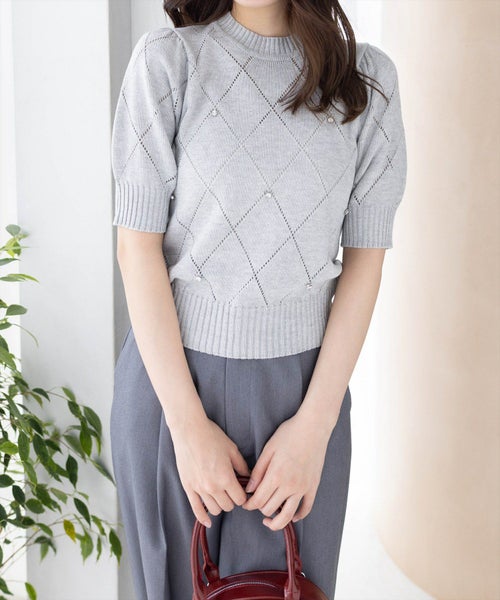 clear ナンバリング透かしニットトップス[CL9422]