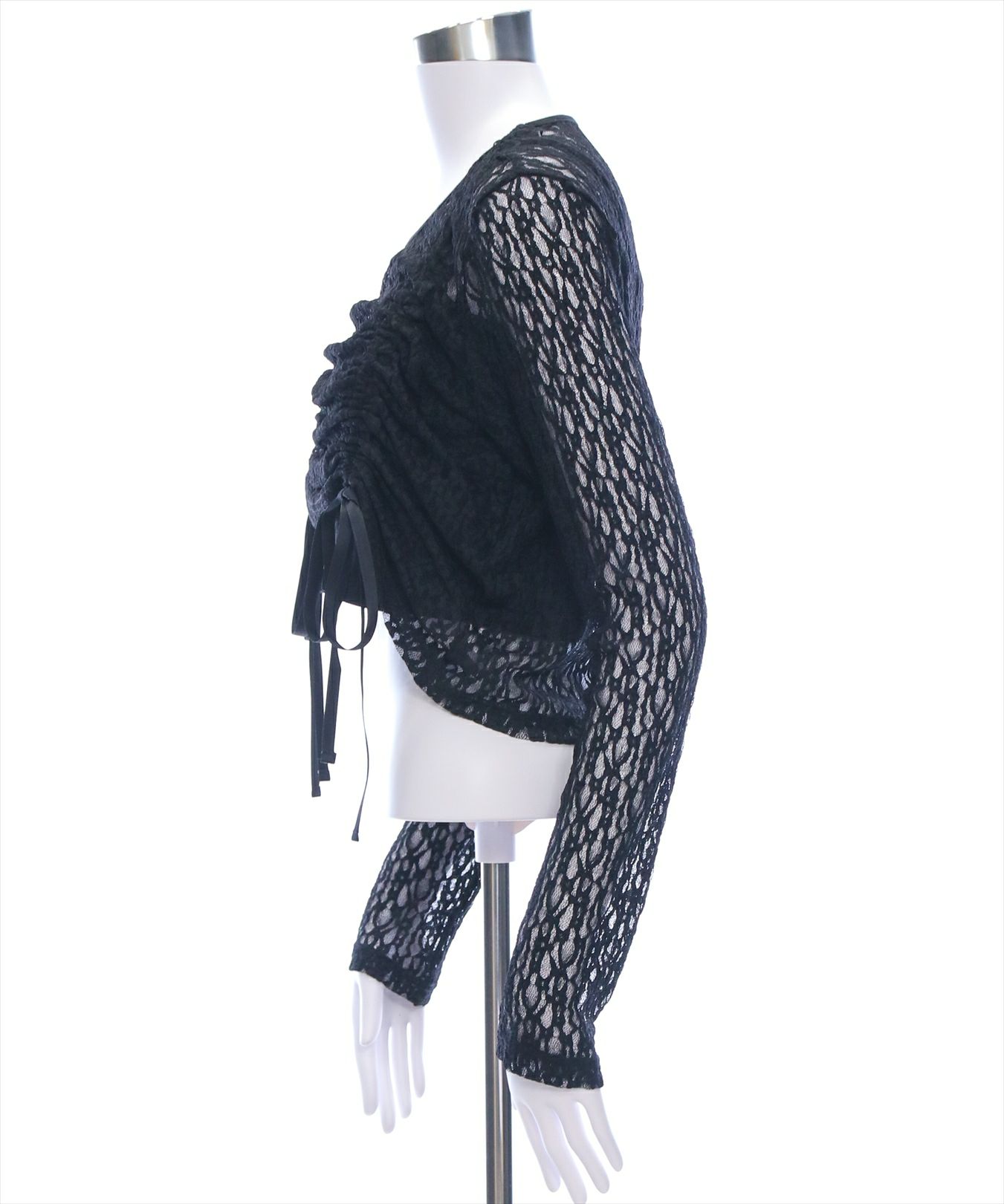 目を引くデザインの!ドロストリボンレーストップス&キャミセット【デザイン】トレンド感のあるレース素材のトップスです。フロントのシャーリングでお好きに着丈をご調整いただけます!キャミソールとセットなので、インナーに困ることなくご着用いただけます♪【コーディネート】デニムパンツにサンダル合わせで夏らしいトレンドコーデに仕上がります!ミニスカート合わせで甘め可愛いコーデも◎