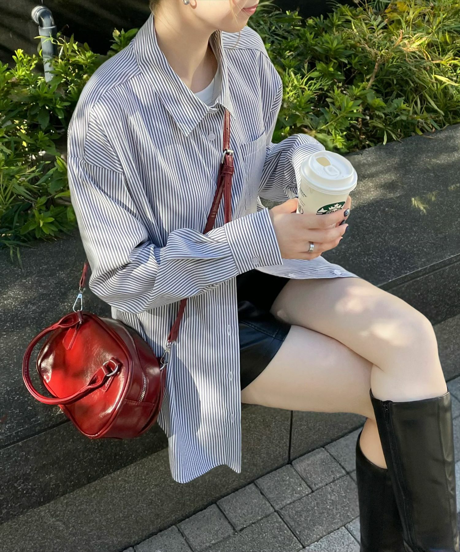 clear 配色ベルト付きメタルハンドルバッグ[CL8777]