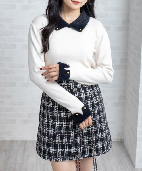 clear≪WEB限定≫フェザー配色襟付ニット[CL7784]