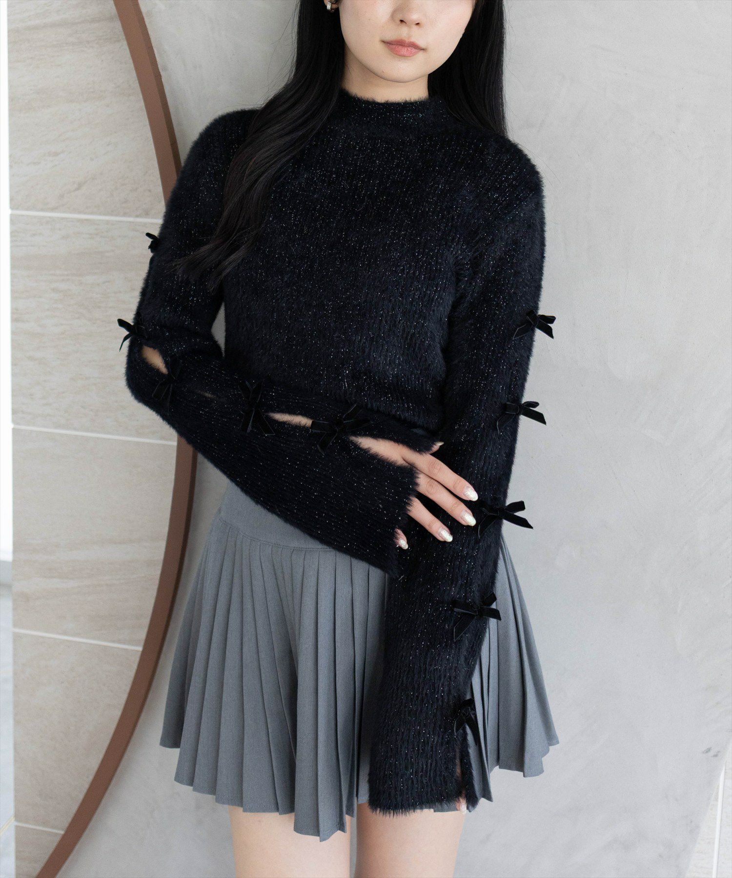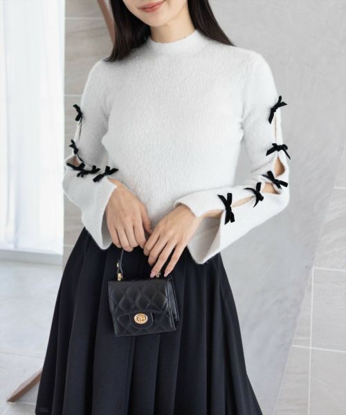 clear≪AW新作/再入荷≫袖リボン付きラメフェザーニットトップス[CL9060]