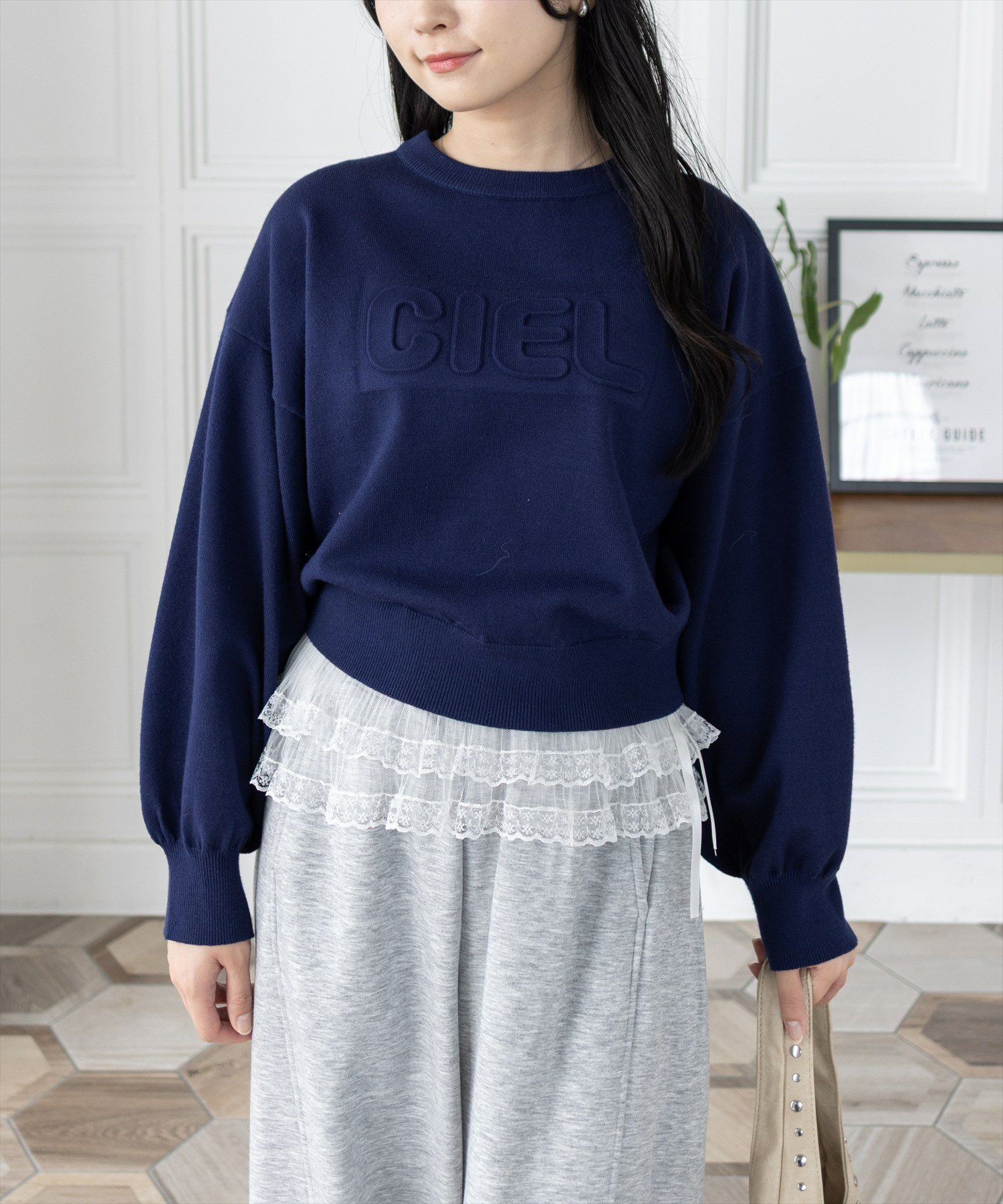 clear≪AW新作≫フロント刺繍シャギーケーブルニットトップス[CL9320]