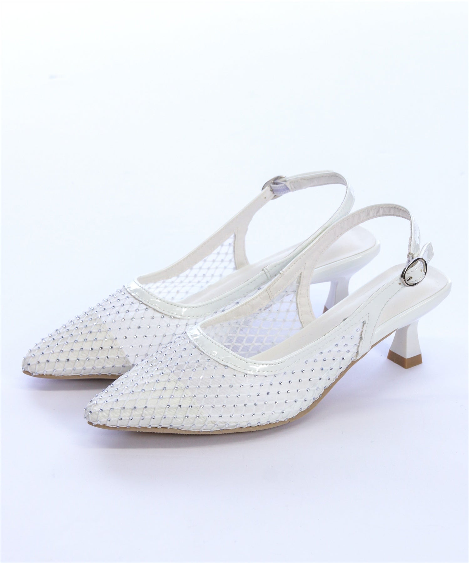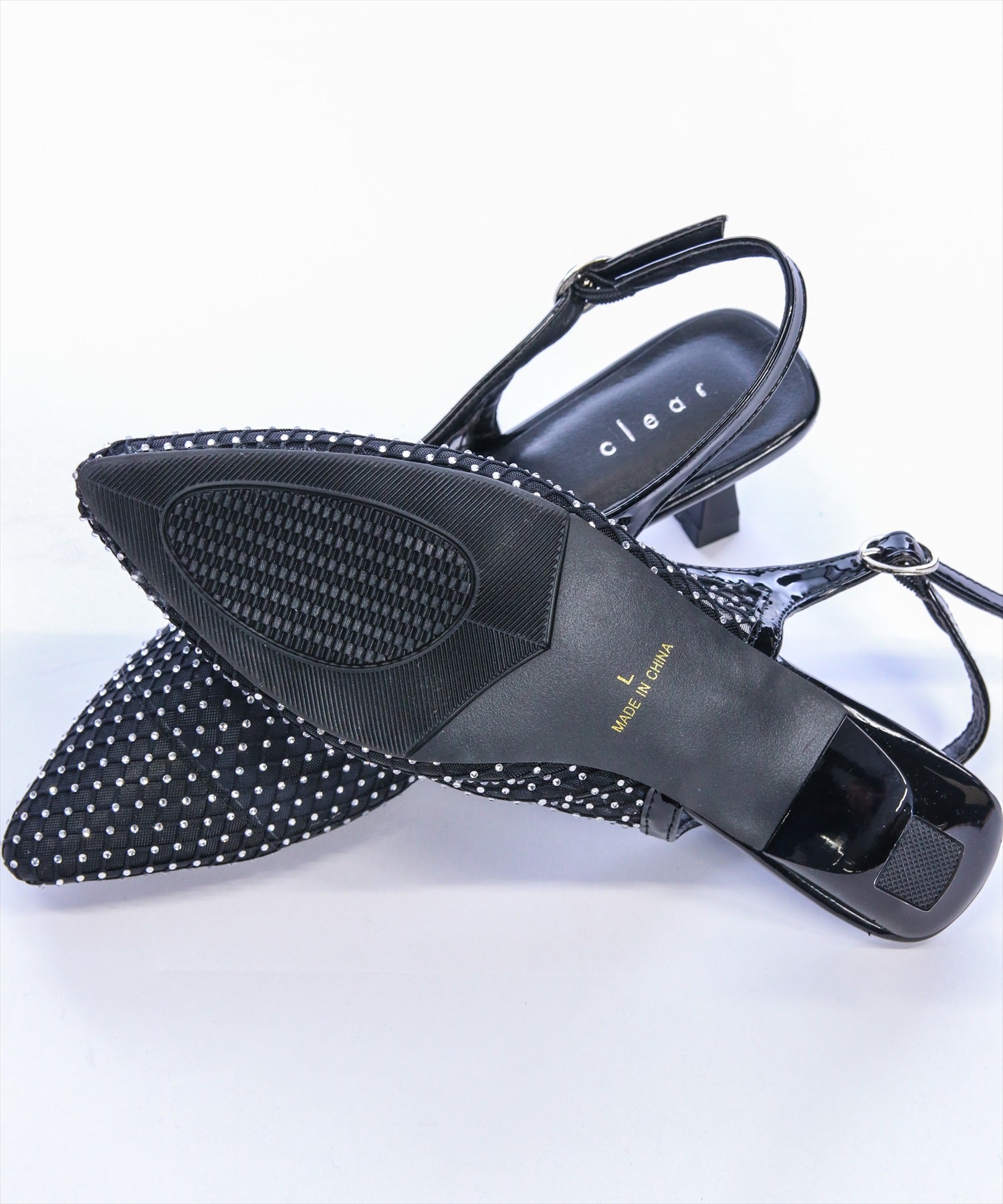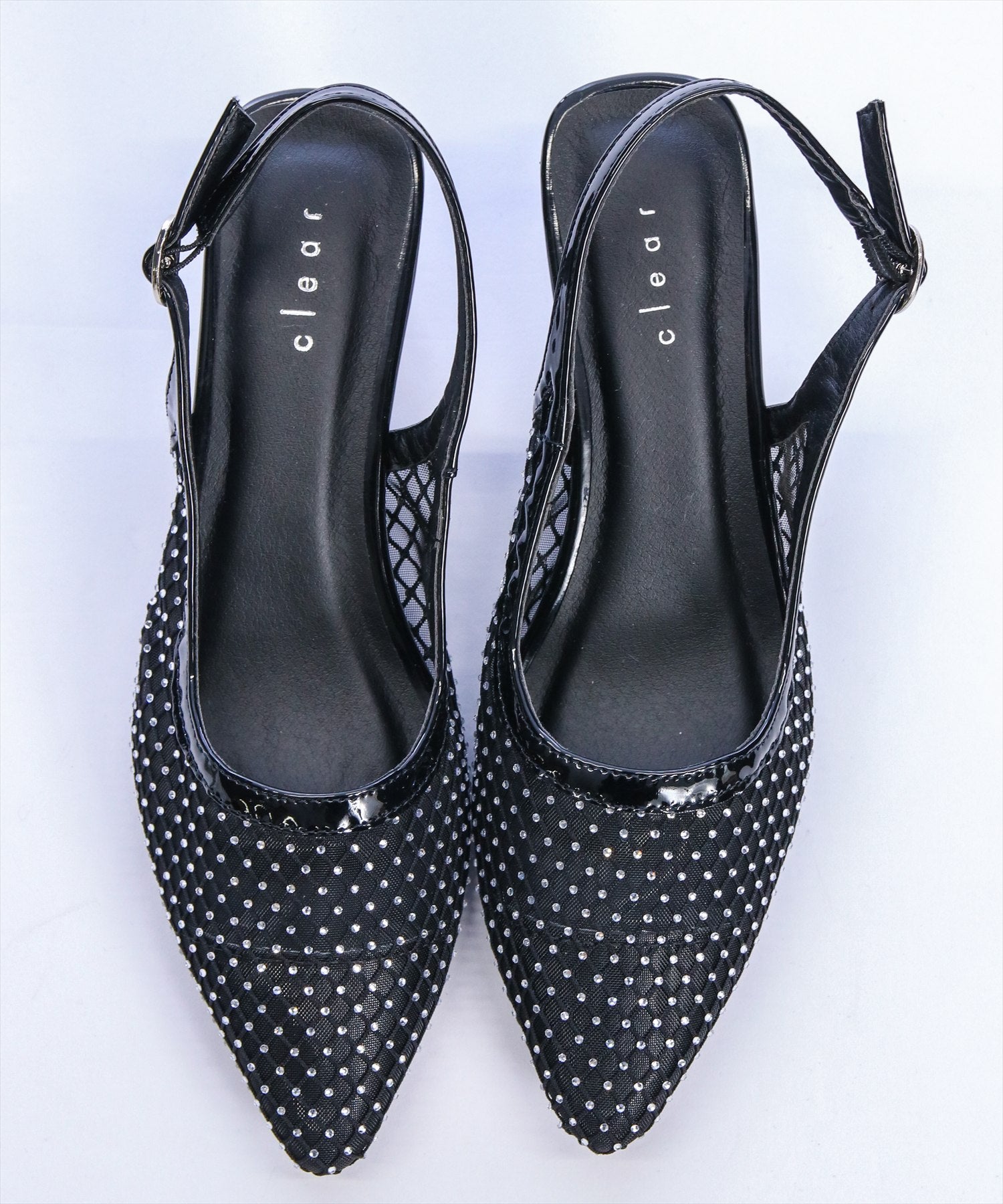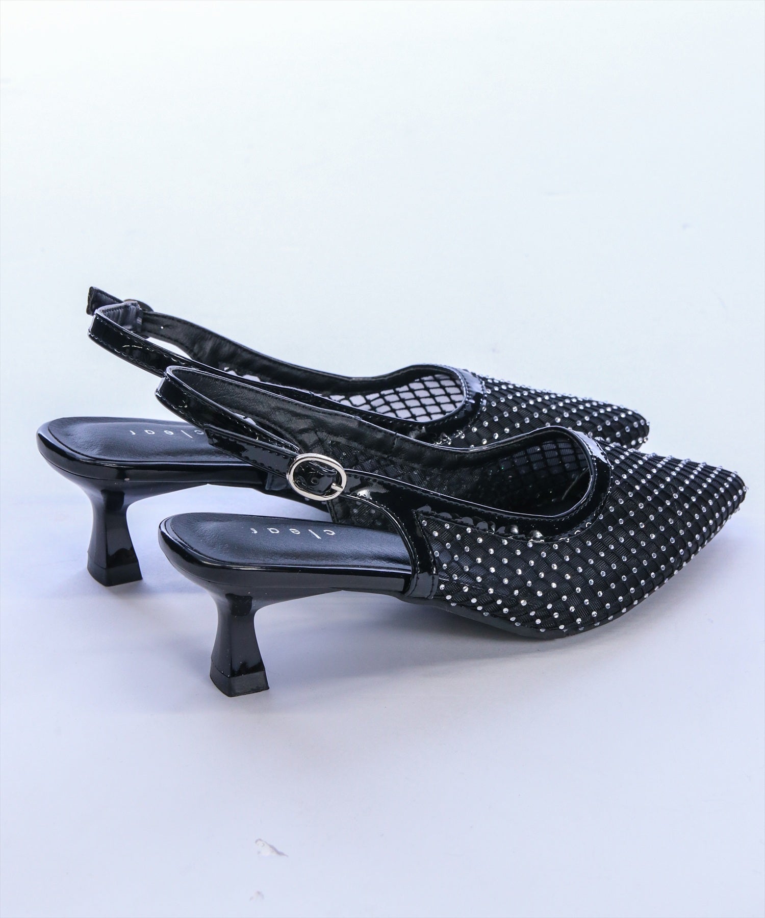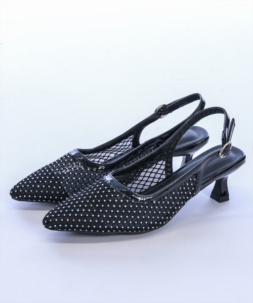 上品に輝く!ラインストーンメッシュミュール。洗練されたシルエットに、繊細なストーンがきらめく大人のための一足♪シャープなフォルムが足元を美しく引き立て、上品な抜け感を演出するメッシュデザインが軽やかな印象をプラスします。