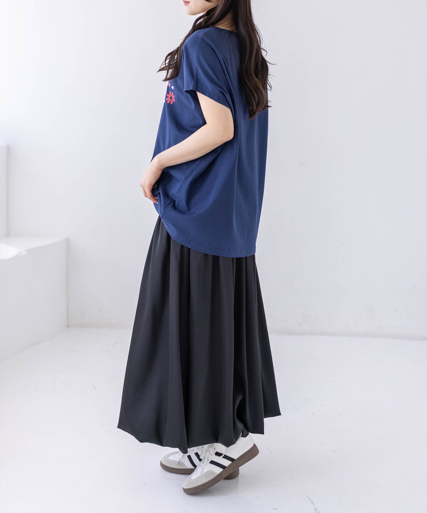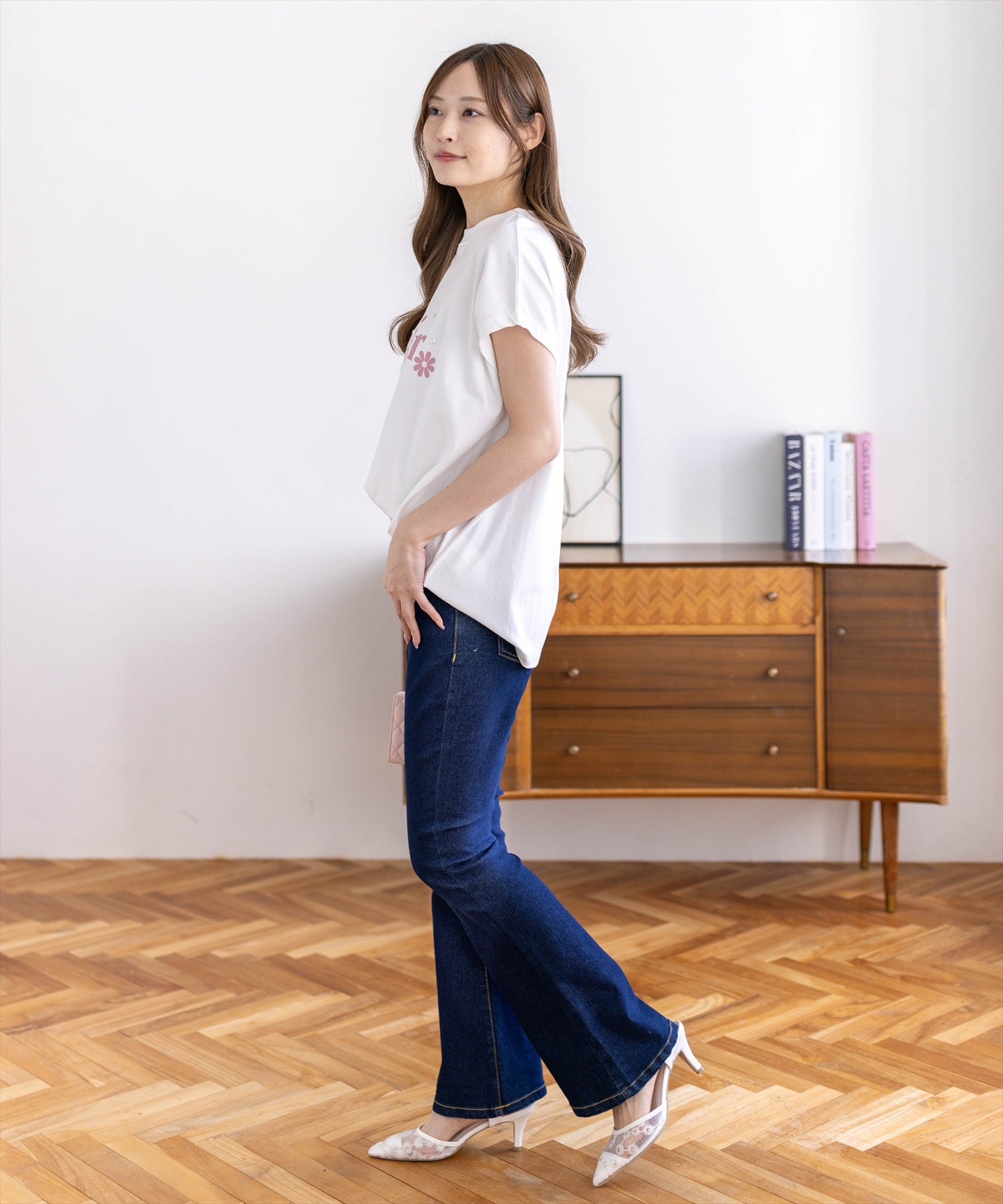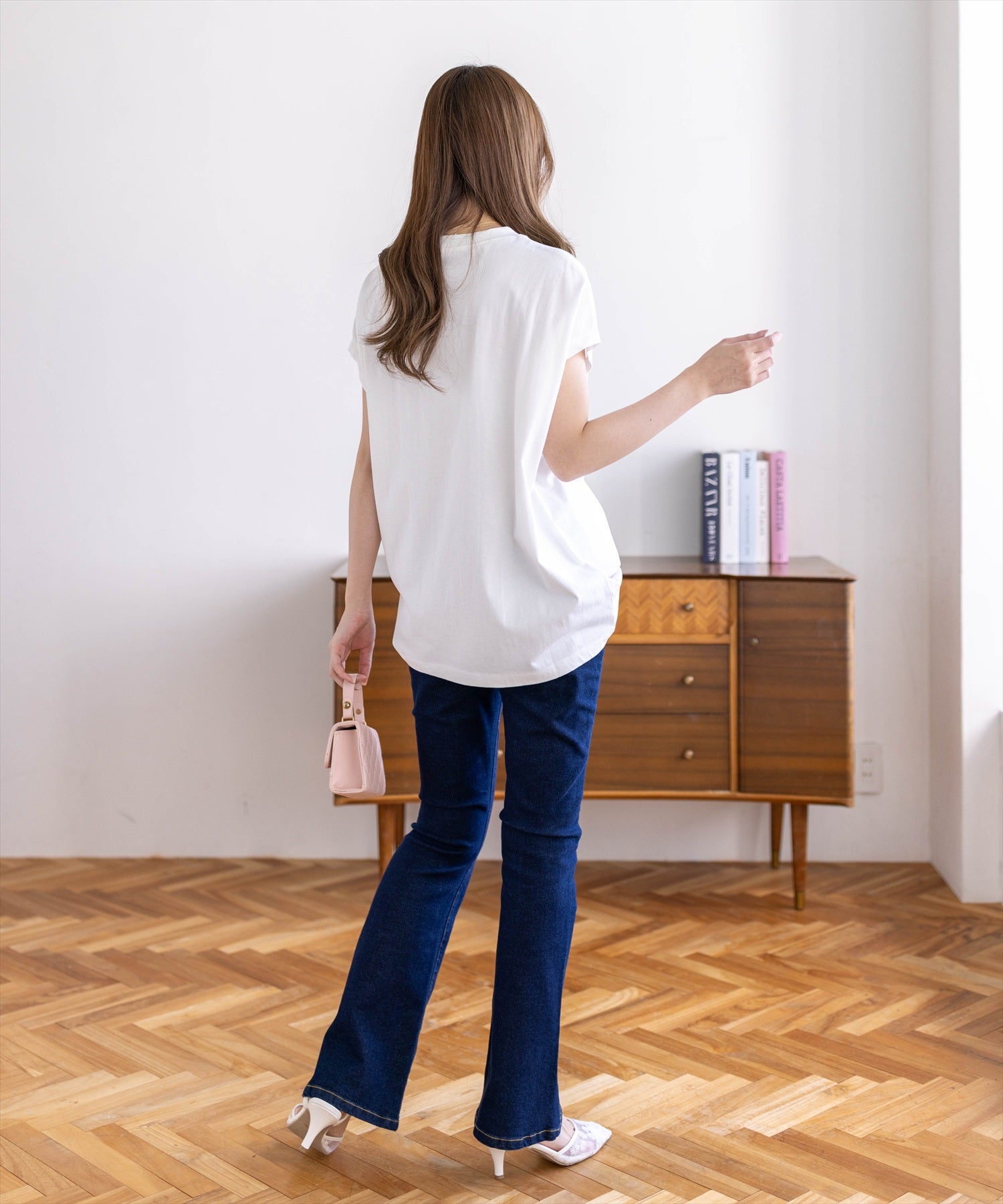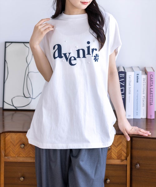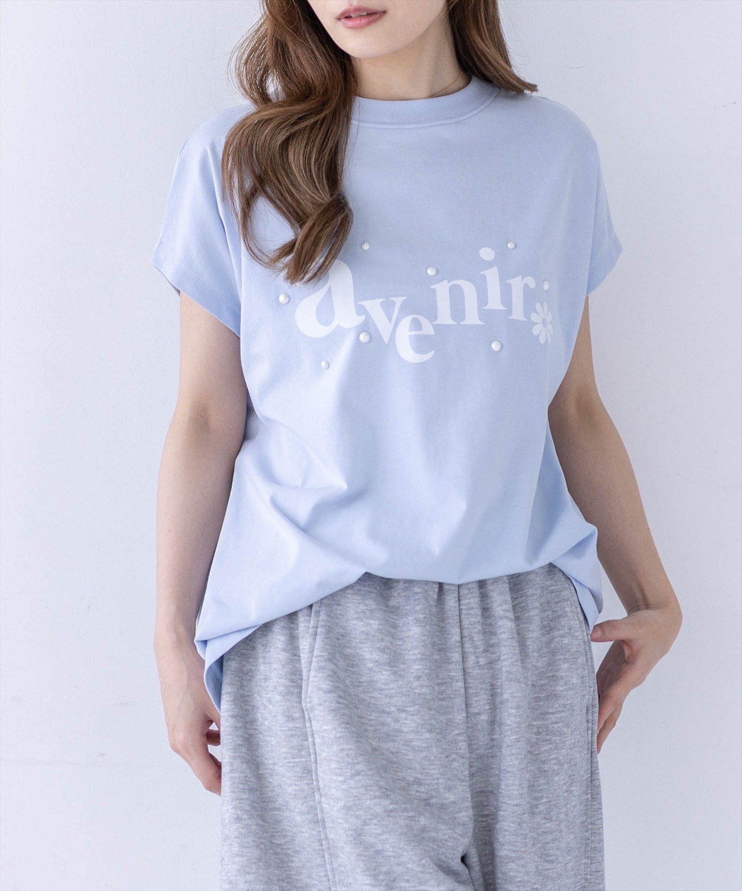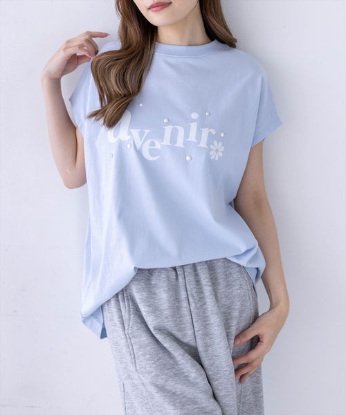 立体感のあるパールがさりげなくあしらわれたフレンチスリーブTシャツ。カジュアルなロゴデザインに上品なアクセントを添えることで、大人が着やすいバランスに仕上げました◎肩まわりを自然にカバーするフレンチスリーブは、腕をすっきり見せてくれるのも嬉しいポイント!