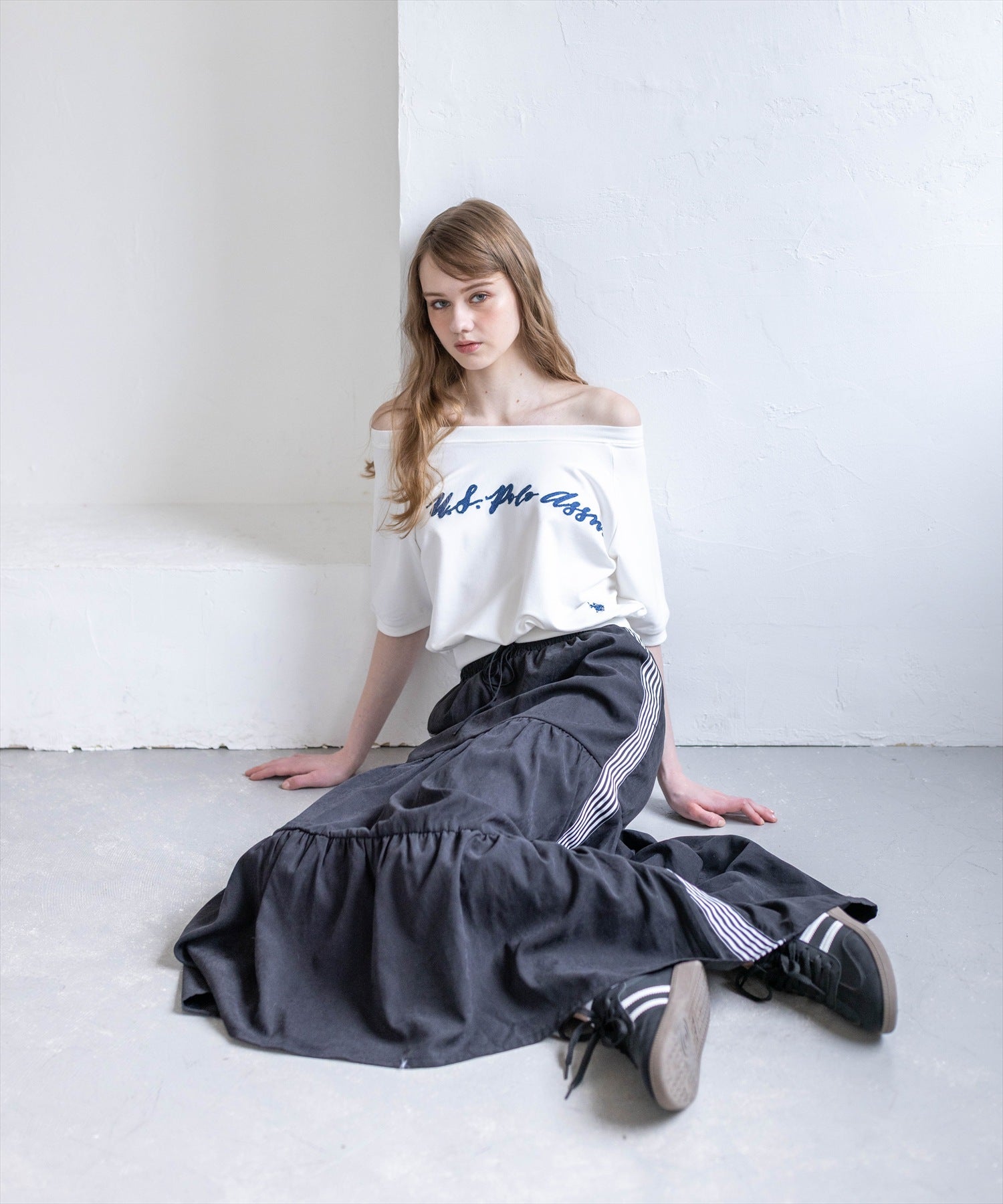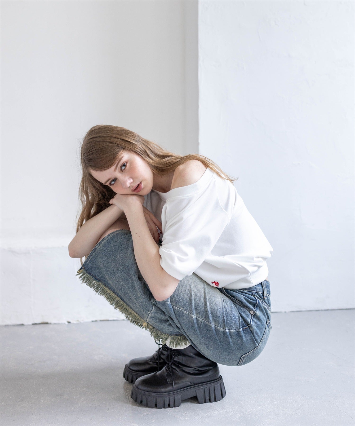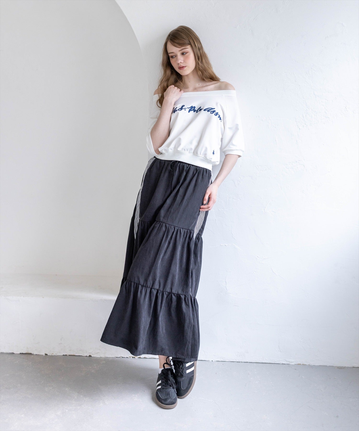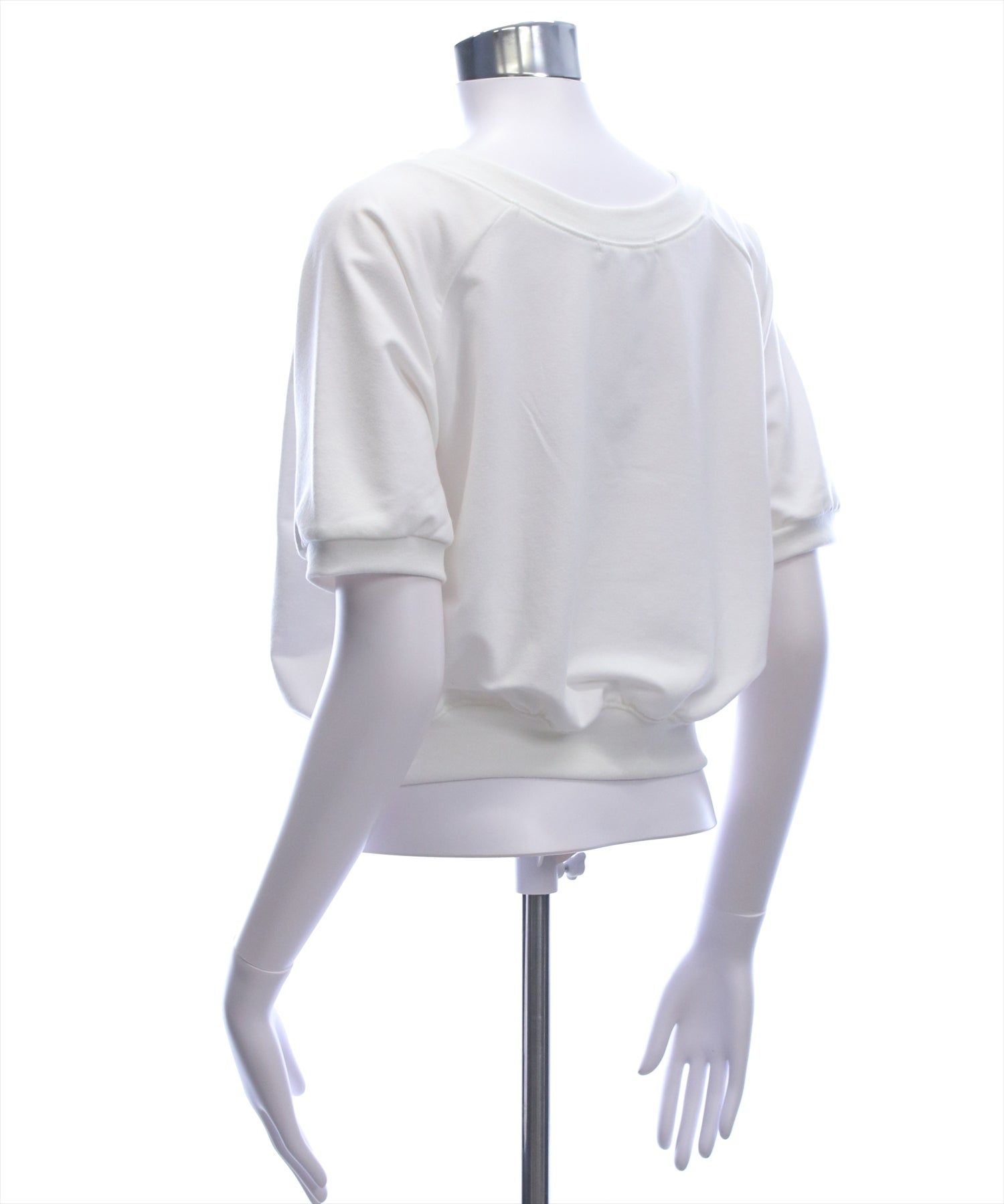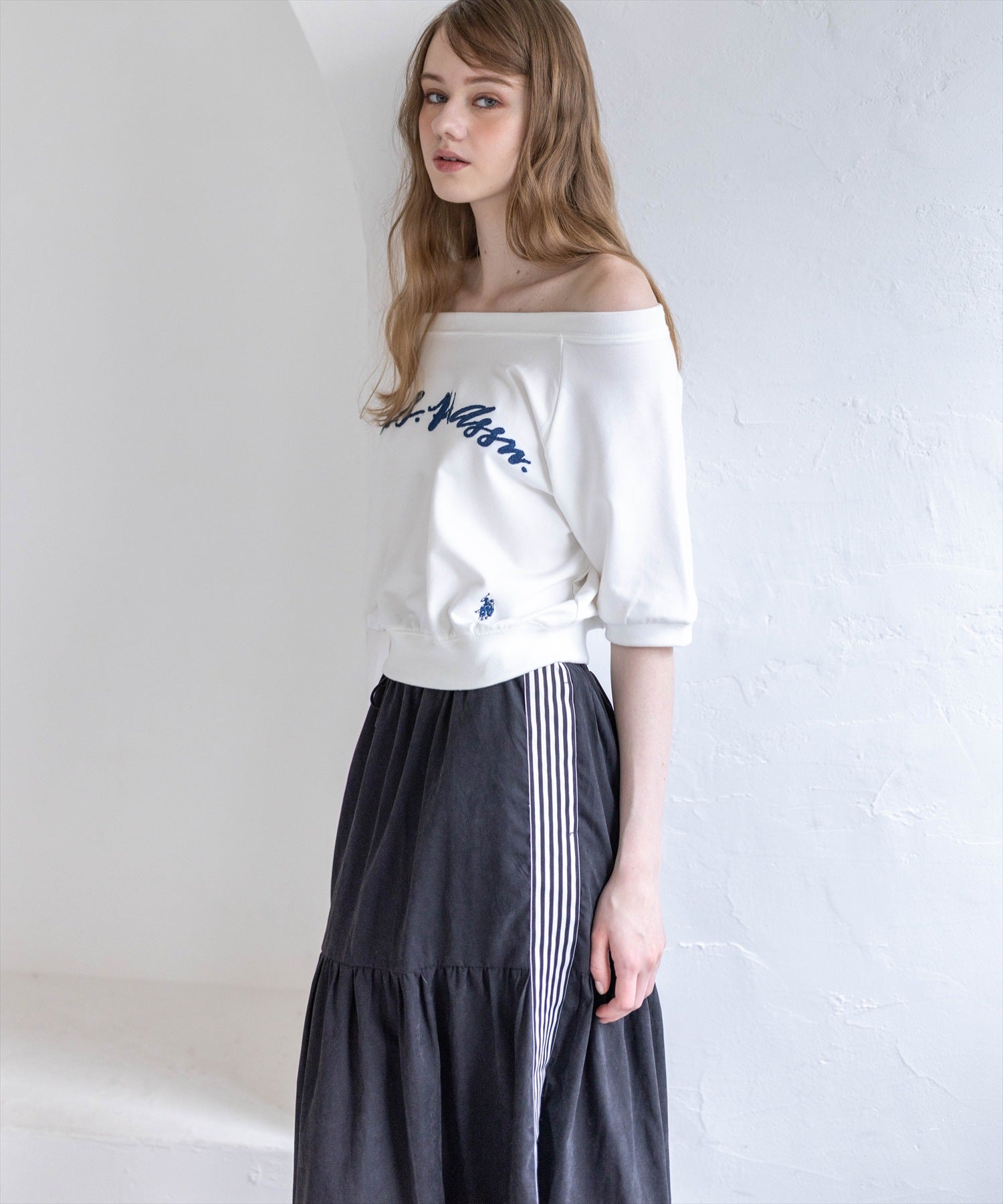 リラックス感のある素材に、女性らしい抜け感をプラスしたトップス。オフショルダーやワンショルダー、肩を出さずに着られる3way仕様です♪フロントのロゴデザインがアクセントになり、シンプルながらも存在感のある一枚です◎