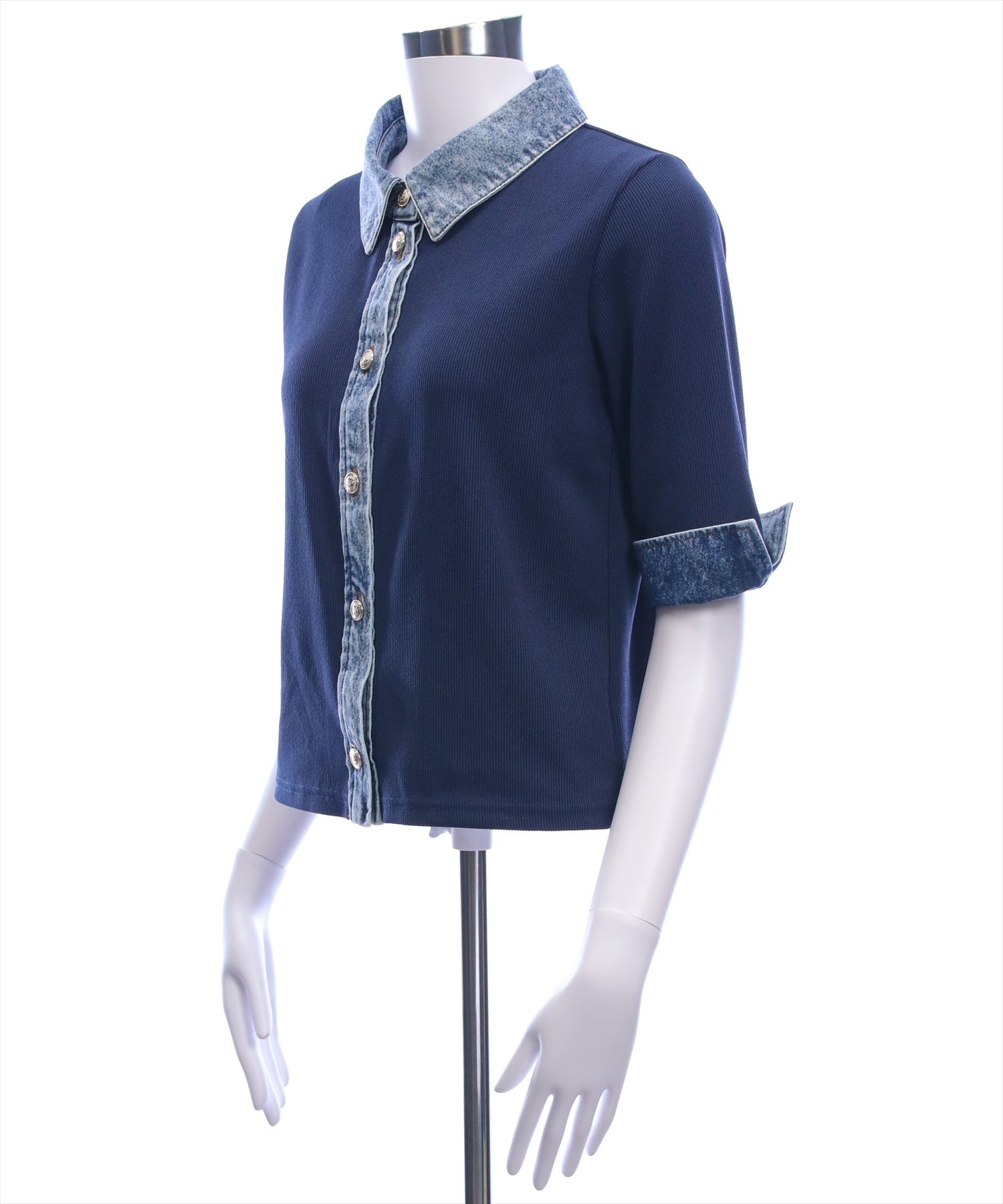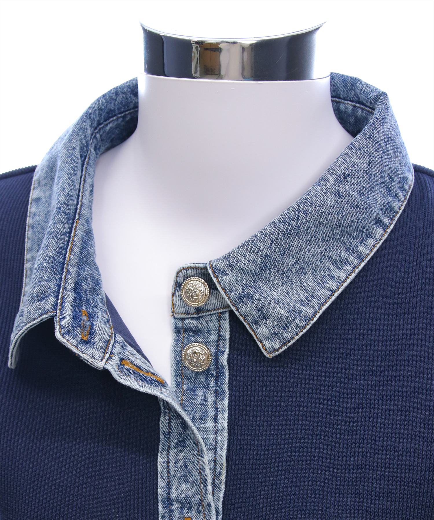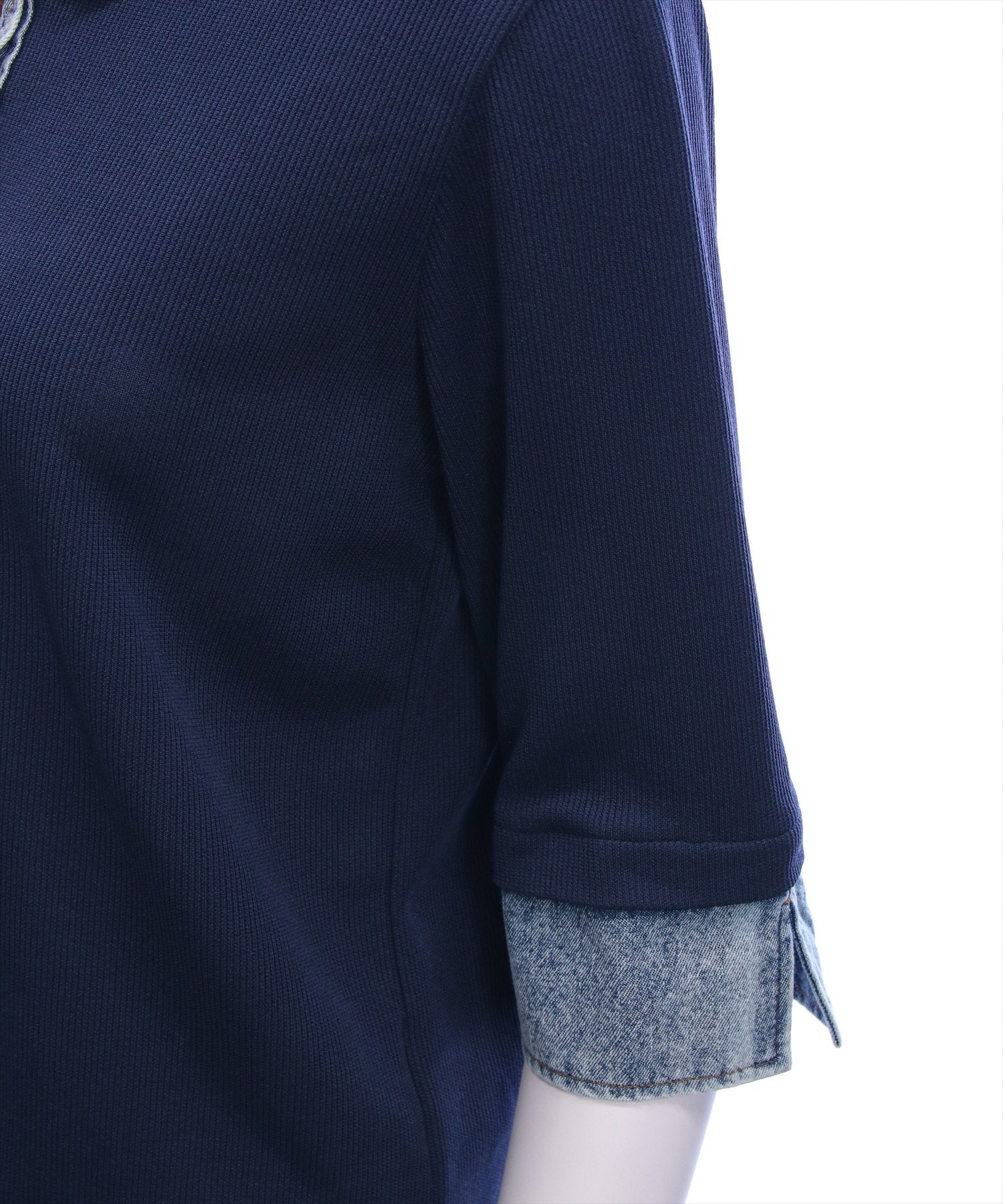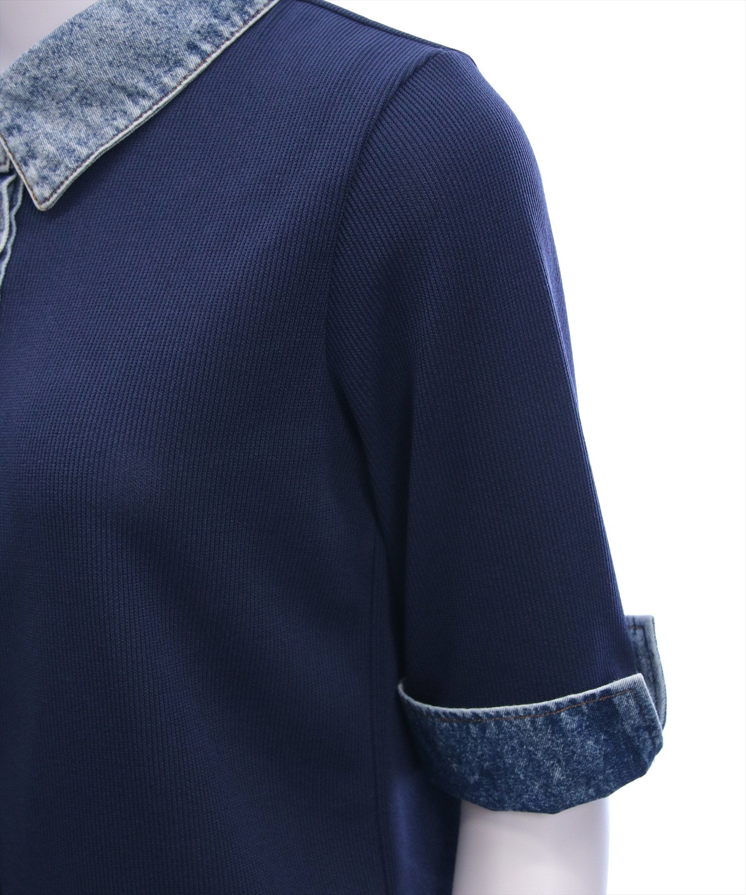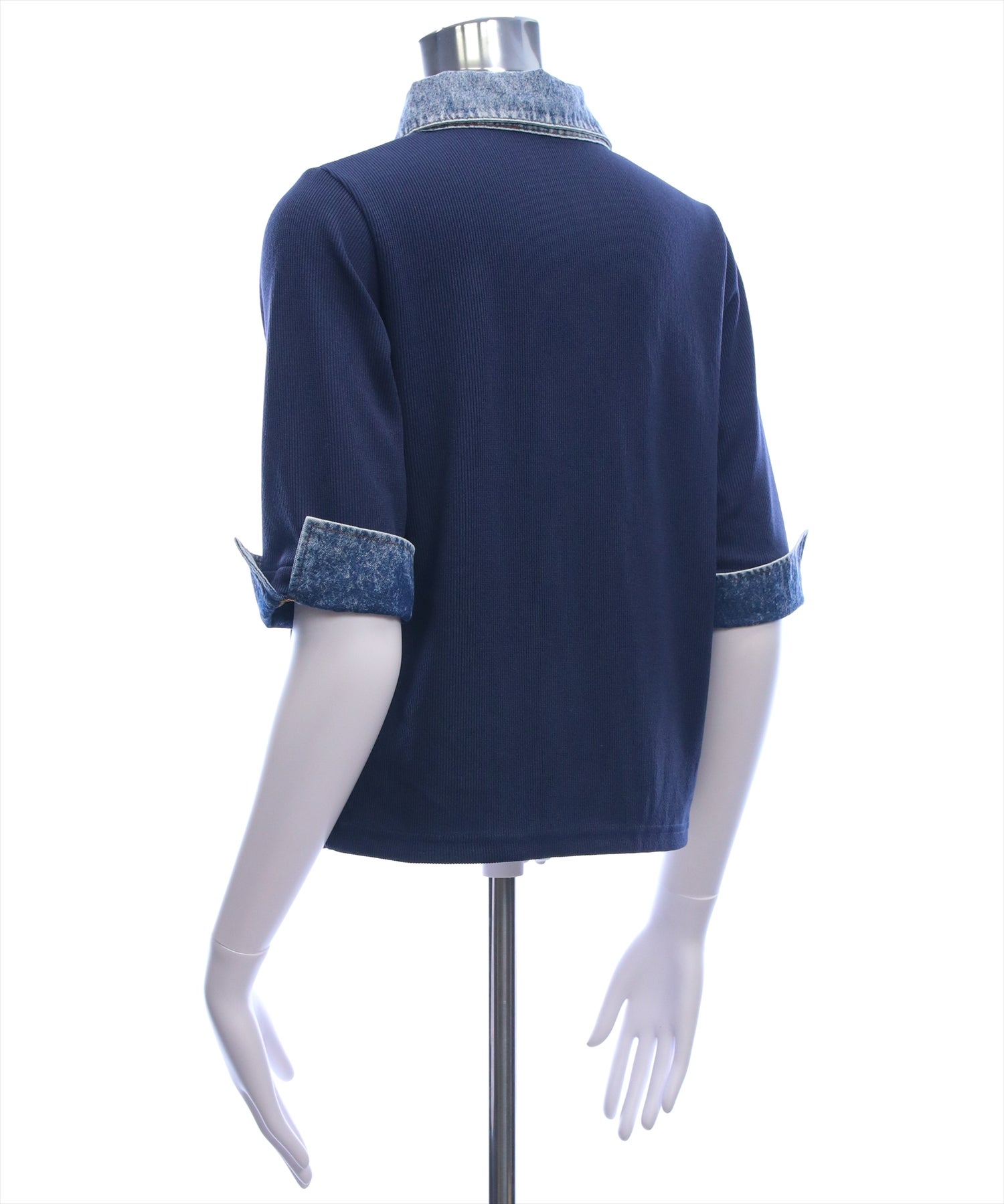 デイリー使い万能トップス♪襟付デニム切替カットソートップス